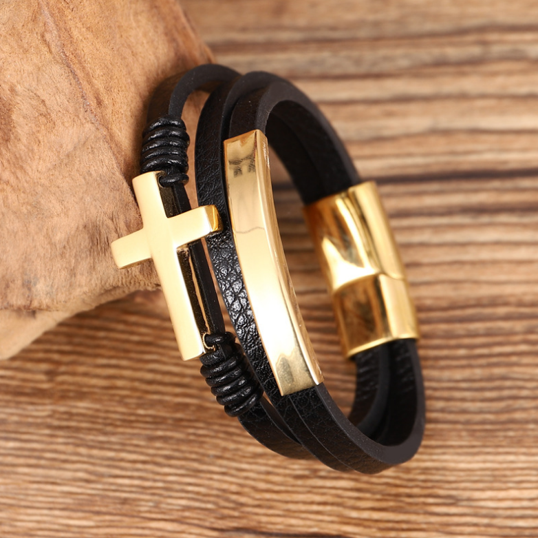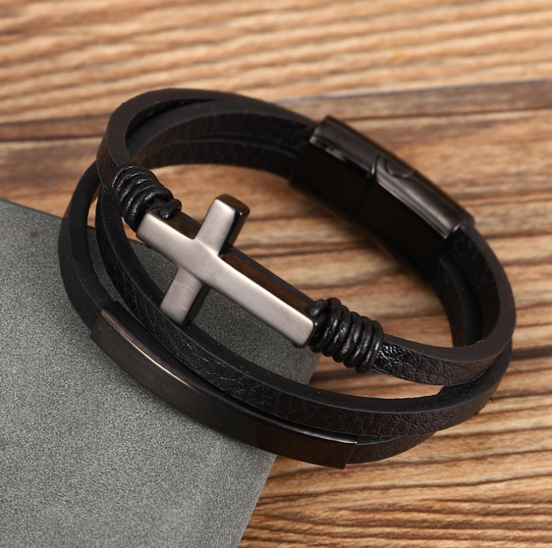 Cross Multi-layer Woven Leather Single-loop Bracelet