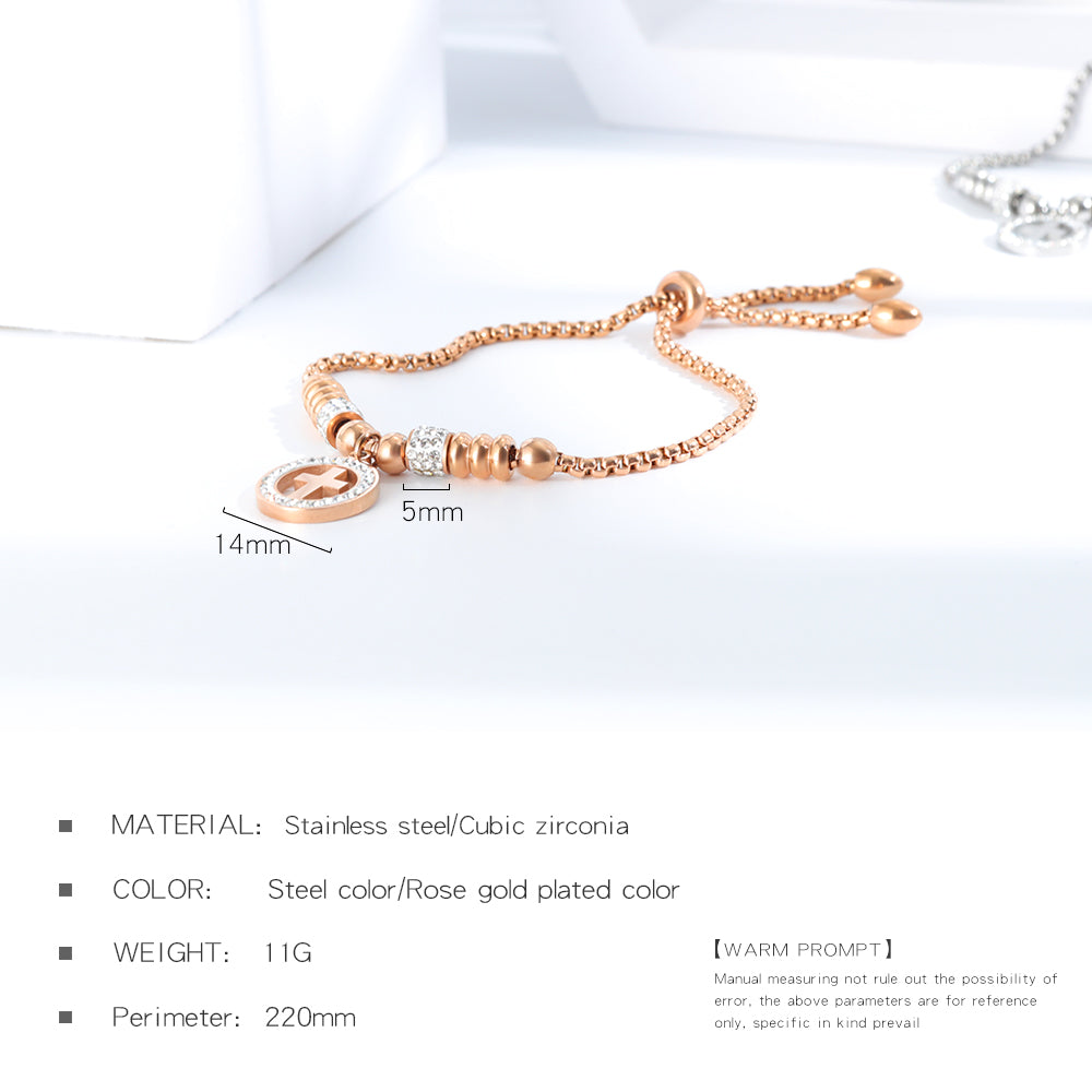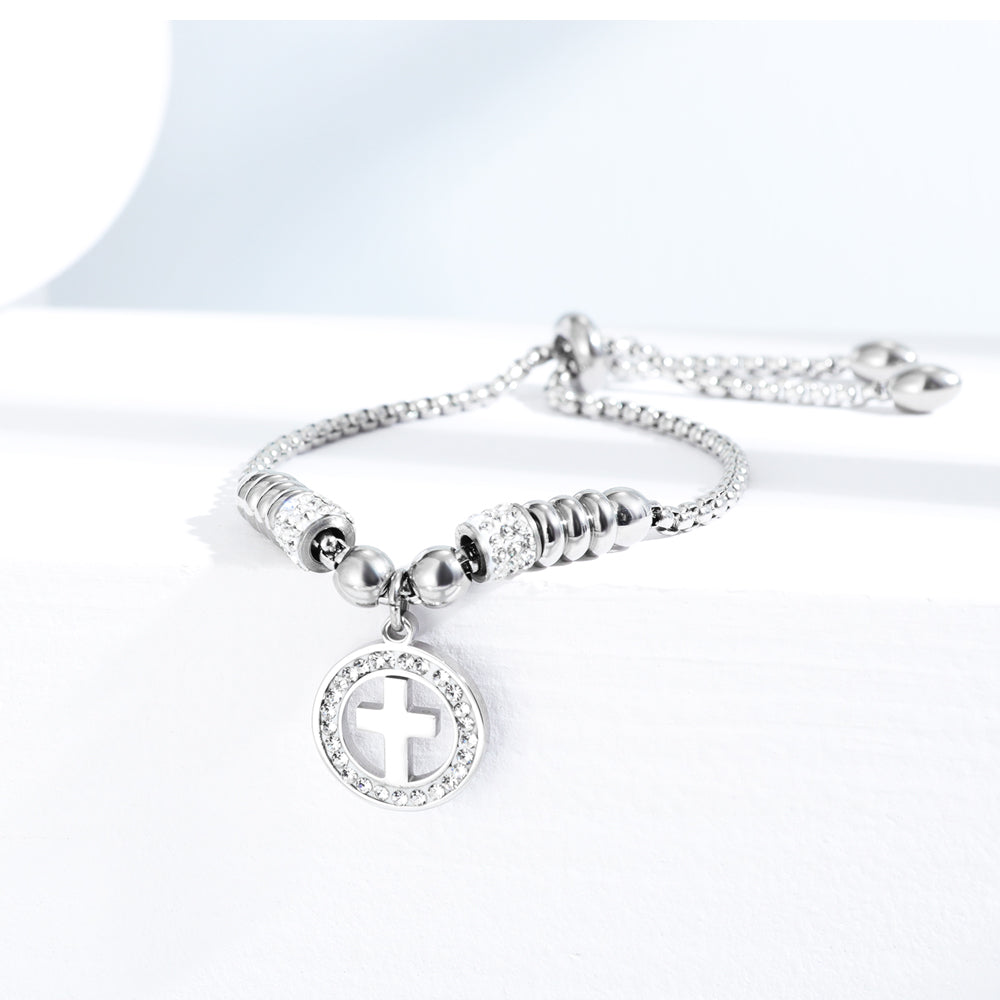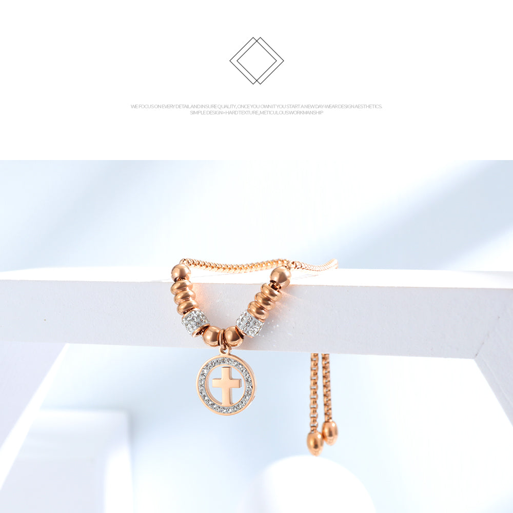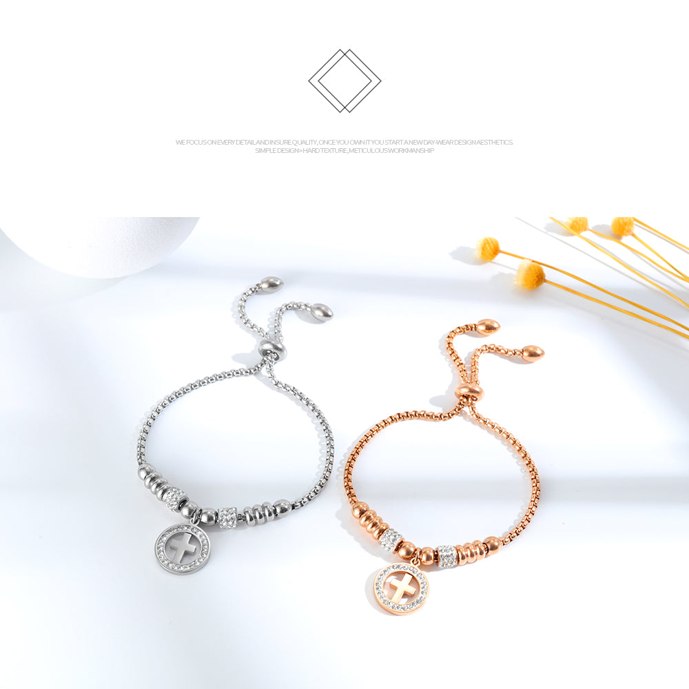 Diamond Studded Cross Bracelet Adjustable Bracelet