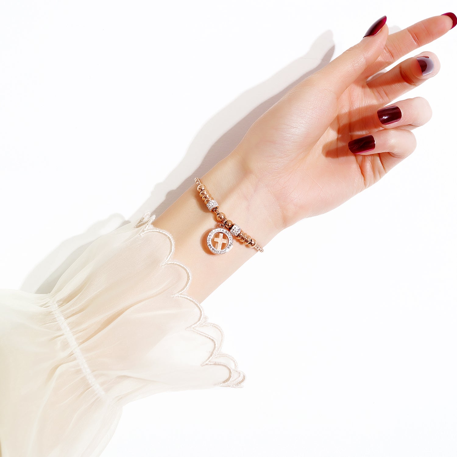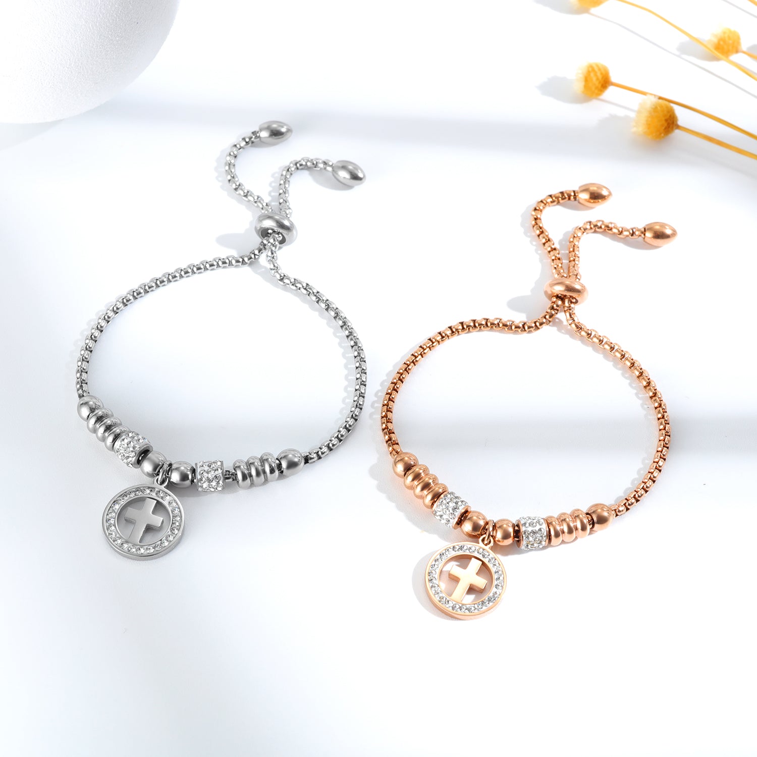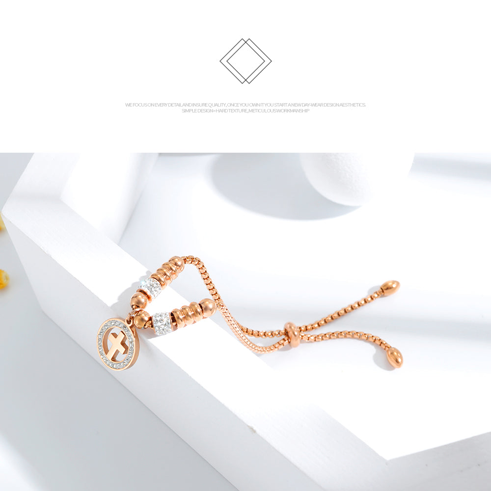 Diamond Studded Cross Bracelet Adjustable Bracelet