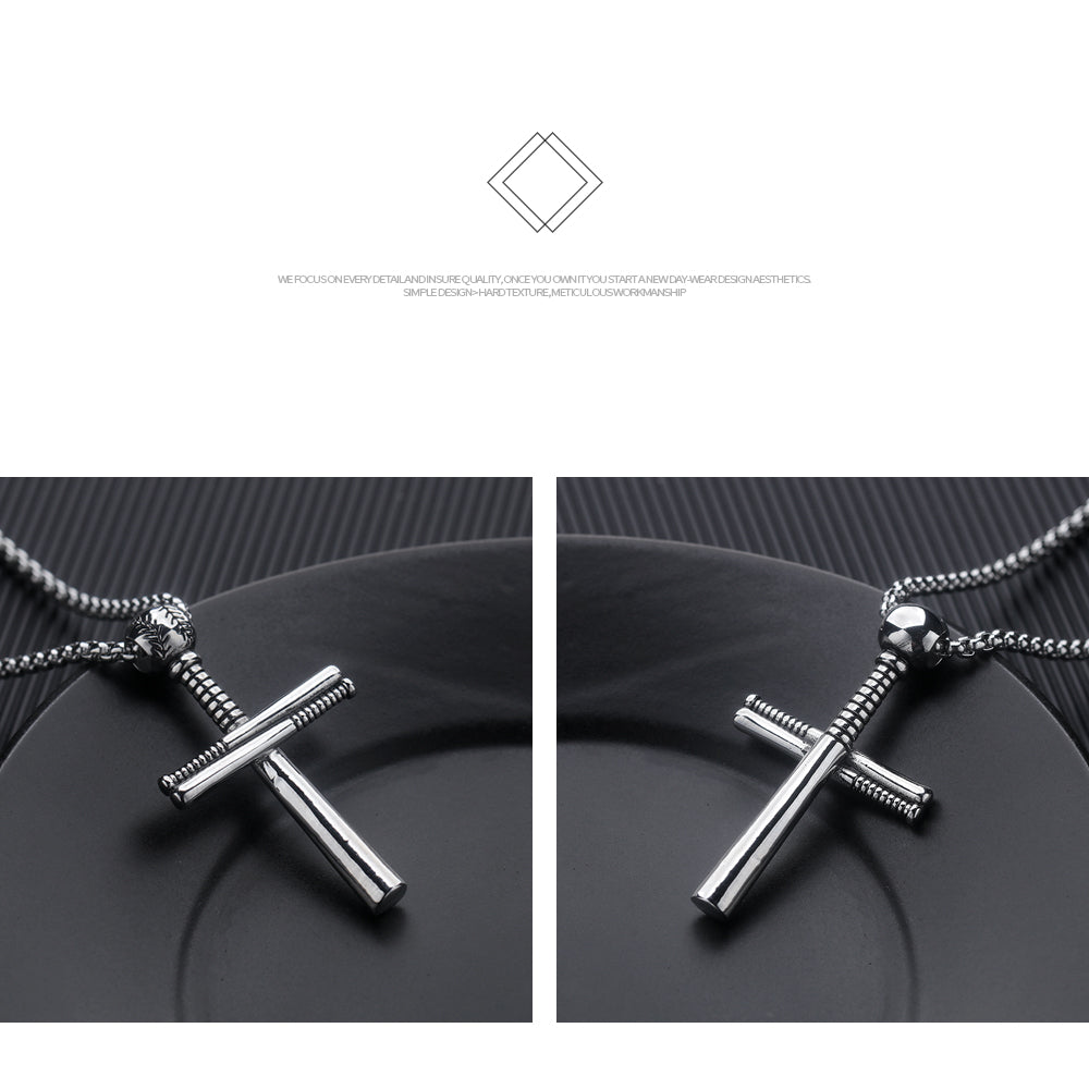 Stainless steel Cross Necklace Baseball Pendant Titanium Steel Trinket