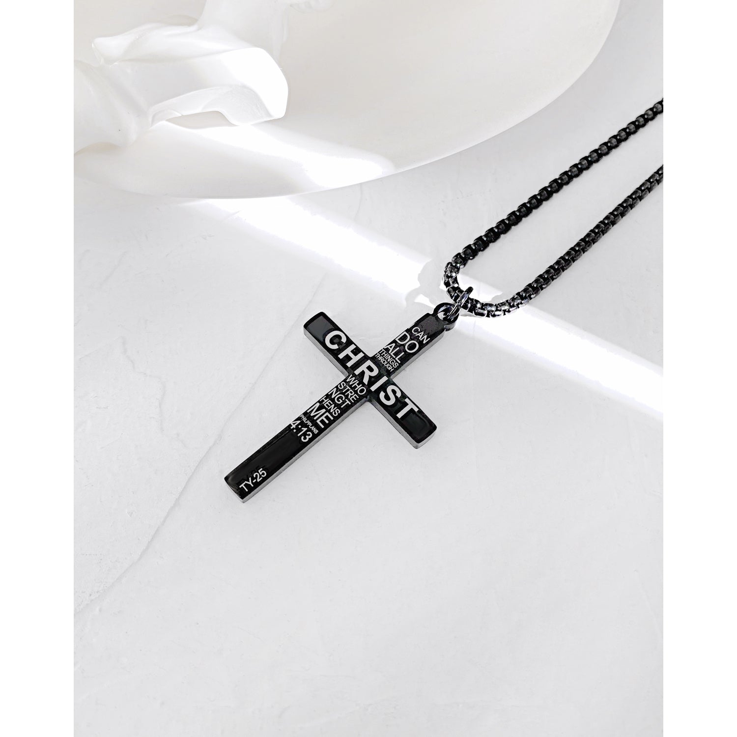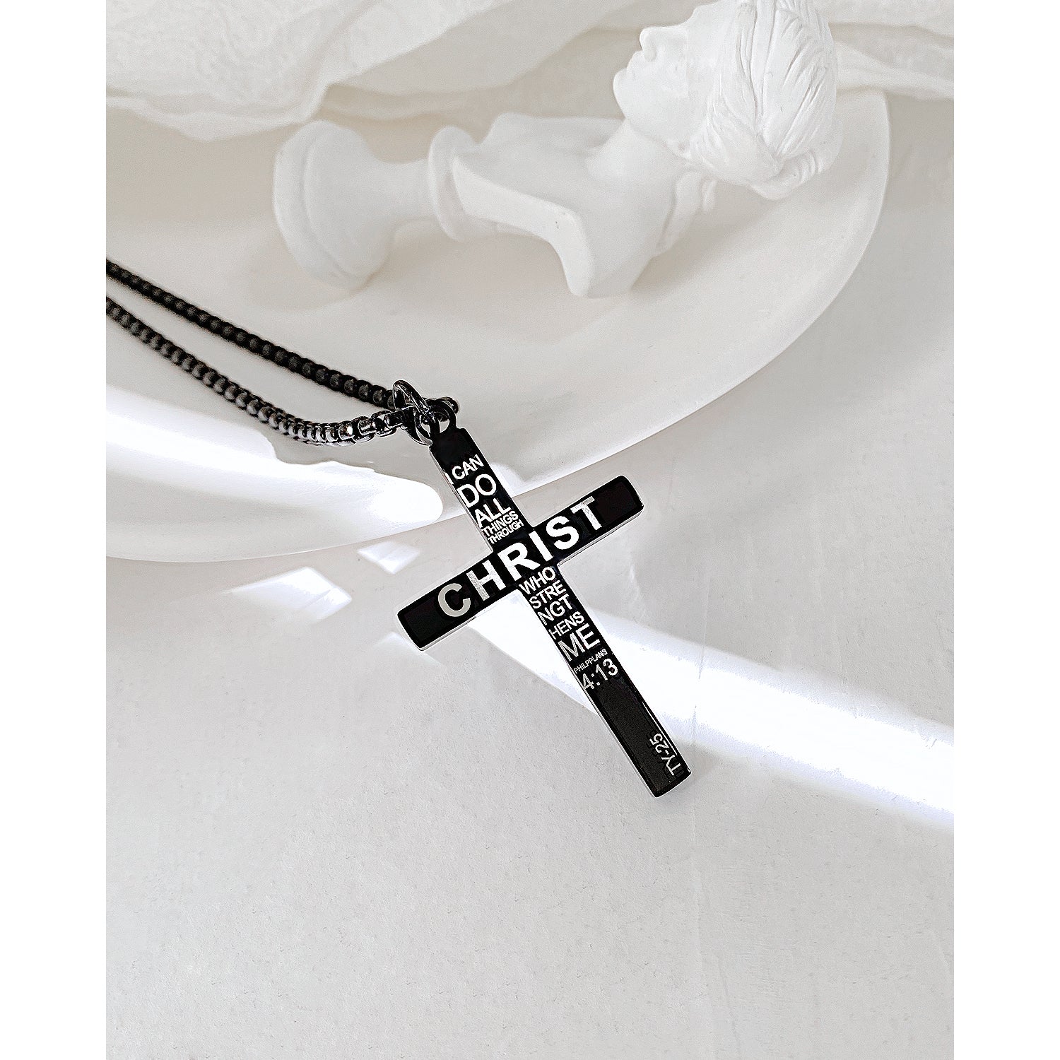 Vintage English Letter Cross Stainless Steel Titanium Steel Necklace