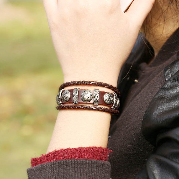 Alloy Braided Bracelet Cowhide Purr Bracelet