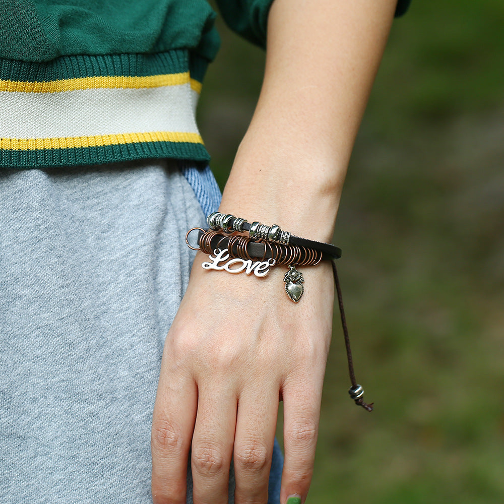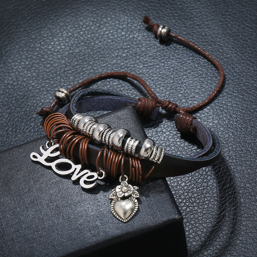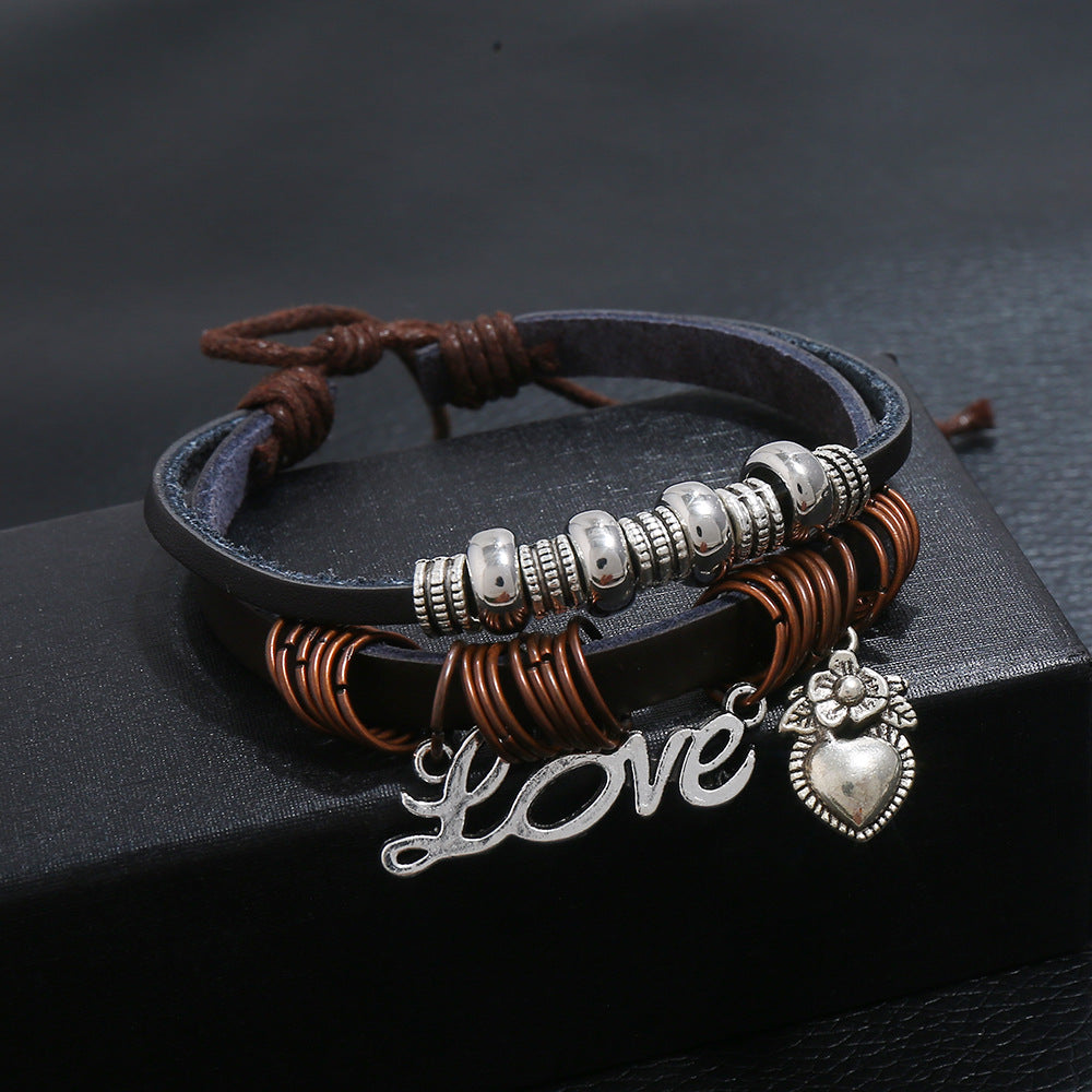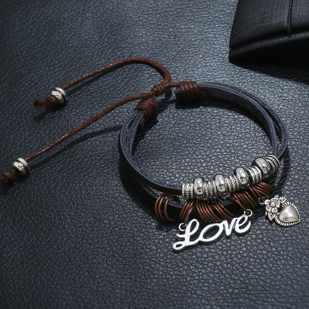 Beaded Cowhide Bracelet LOVE Pendant Bracelet
