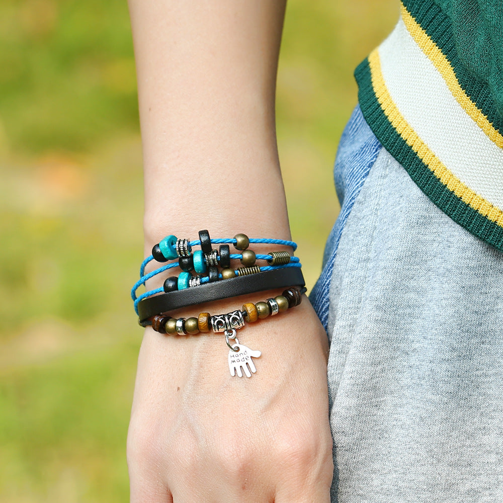 Beaded Leather Bracelet Small Palm Hanging Cowhide Bracelet