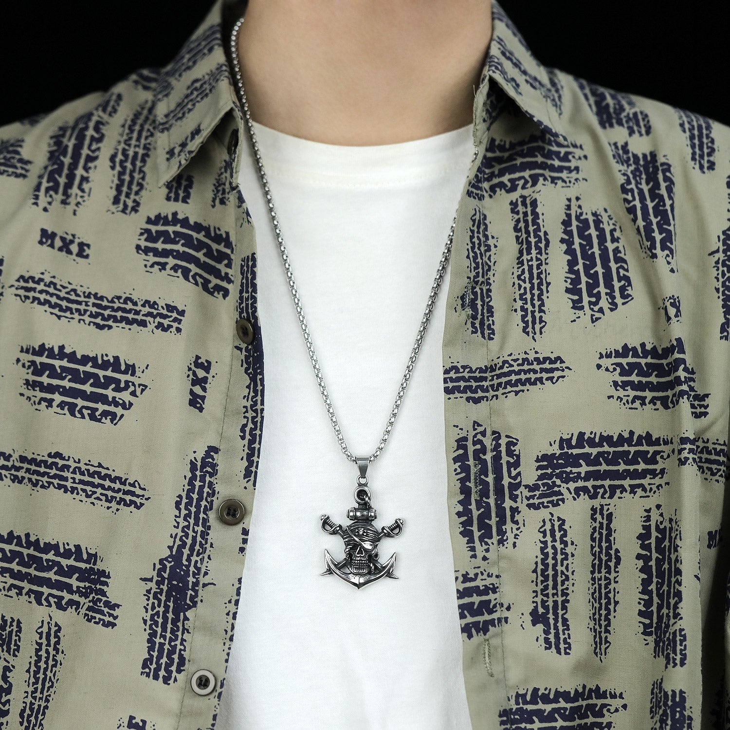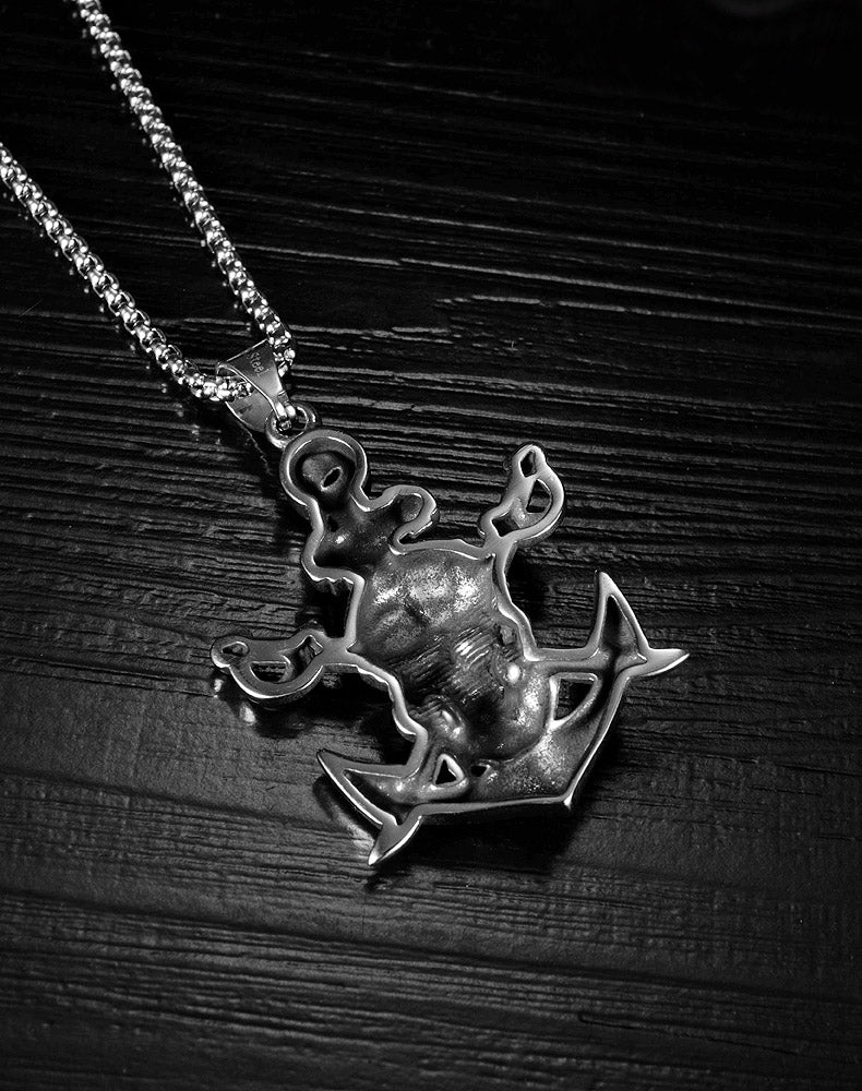 Double Sword Pirate Titanium Steel Necklace Retro Halloween Skull Ghost Head Anchor Necklace