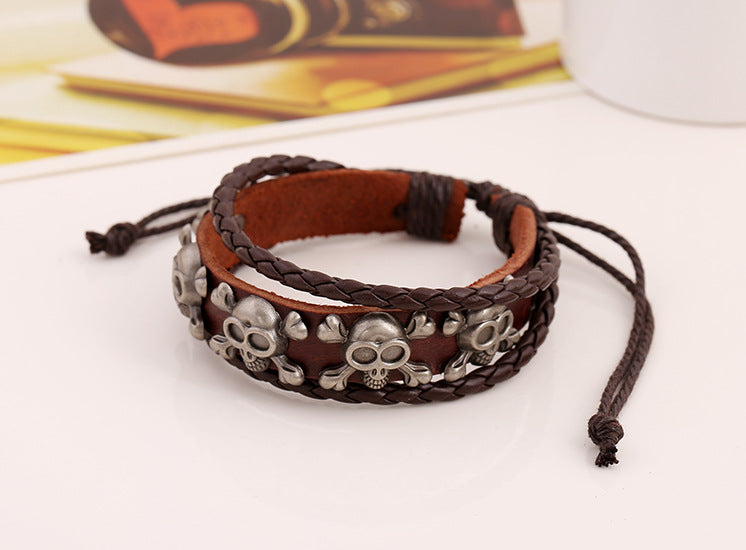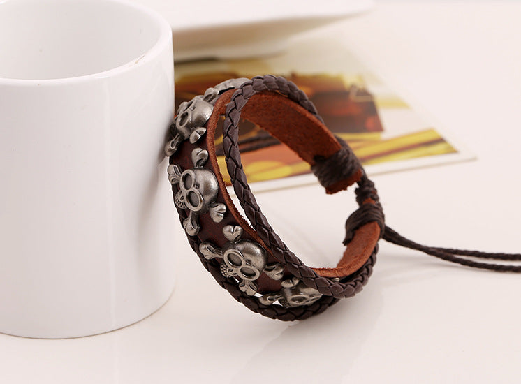 Fashion Beaded Bracelet Cowhide Braided Bracelet Alloy Skull Bracelet