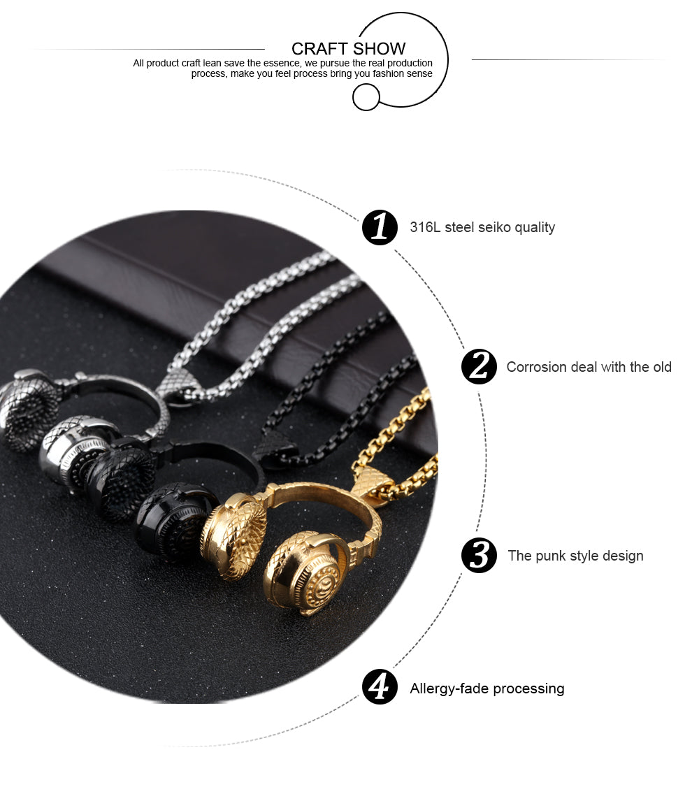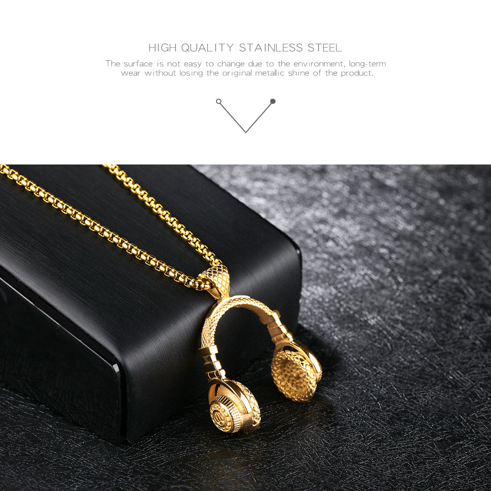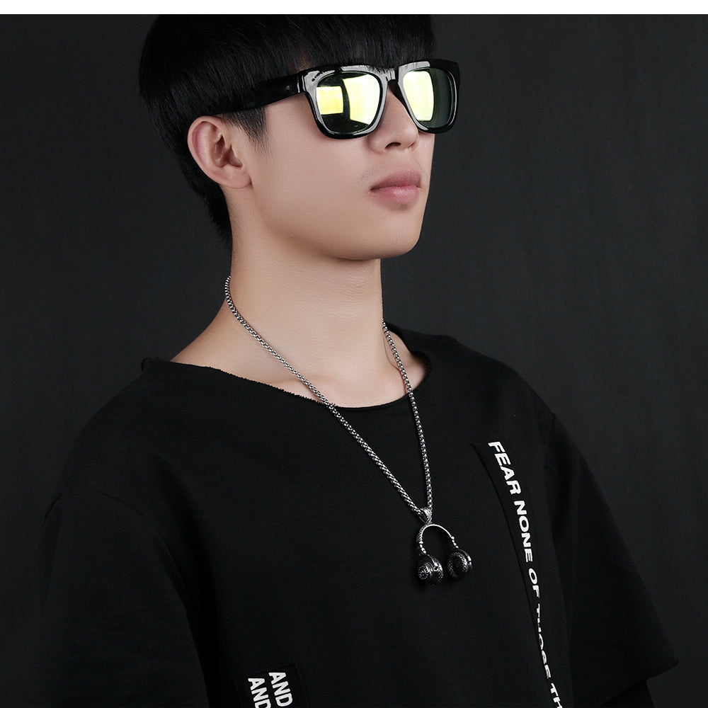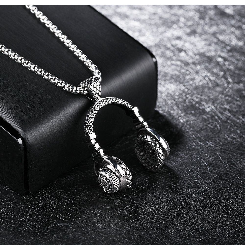 Fashion Music Headphones Titanium Steel Men's Necklace