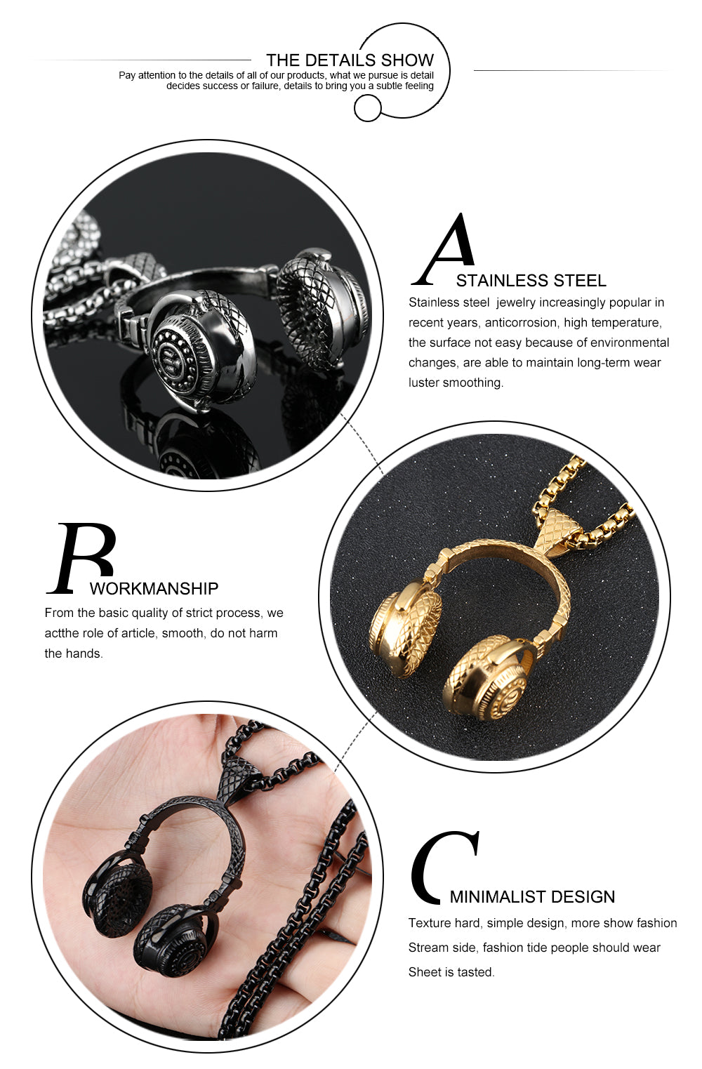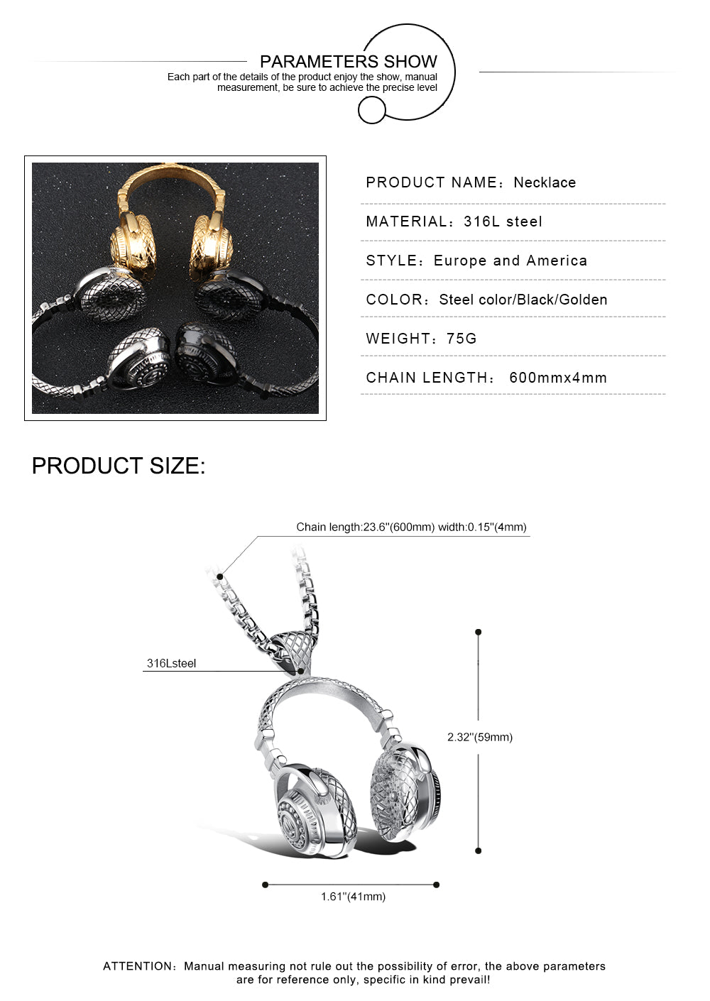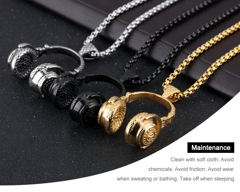 Fashion Music Headphones Titanium Steel Men's Necklace
