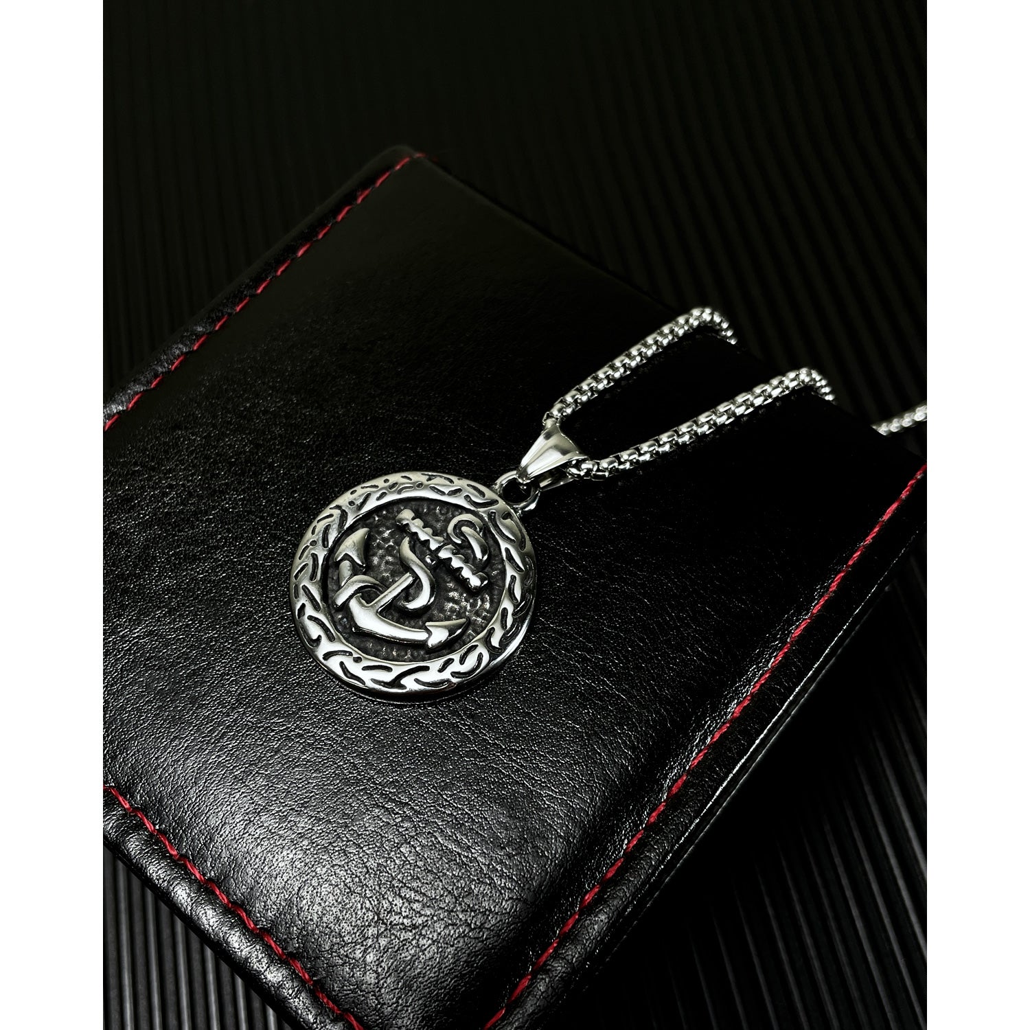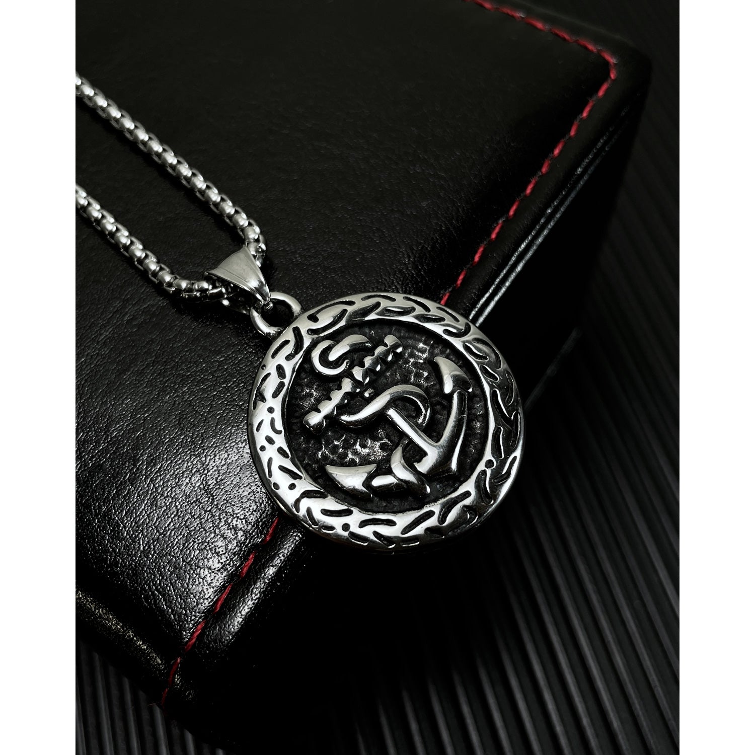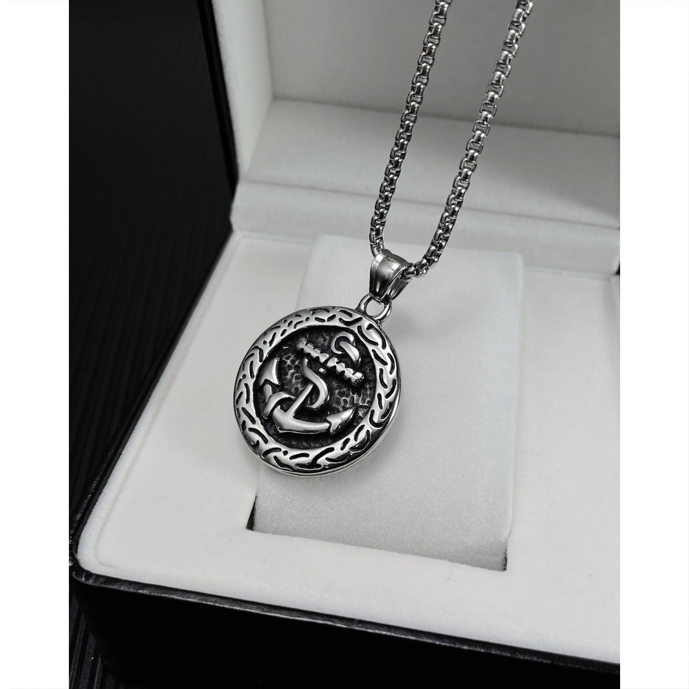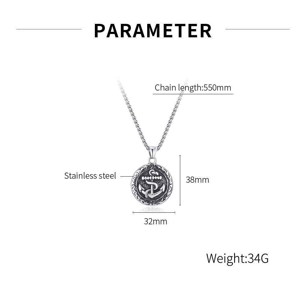 Fashion titanium steel Hip Hop Style Round Brand Pendant Trend Personality Boat Anchor Stainless Steel Necklace