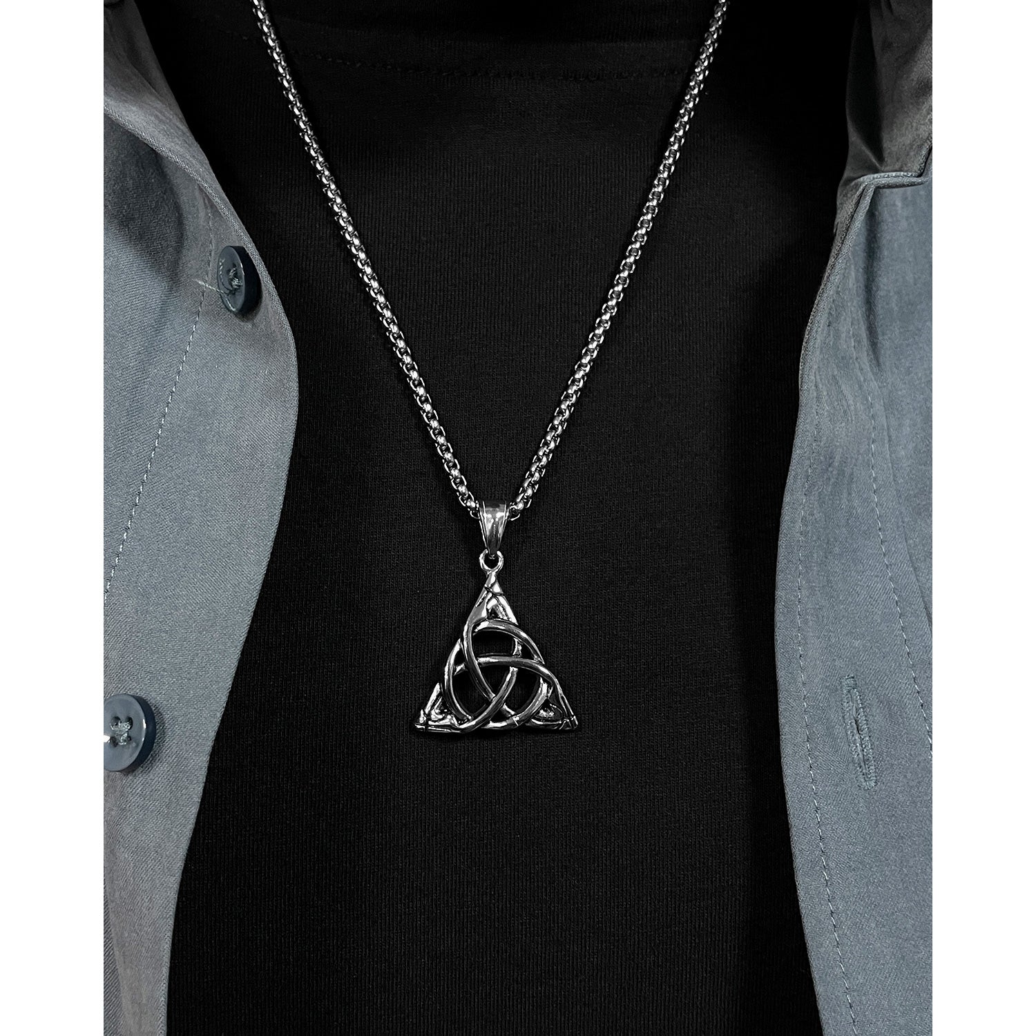 Personality Vintage Triangle Wrap Pendant Fashion Stainless Steel Necklace
