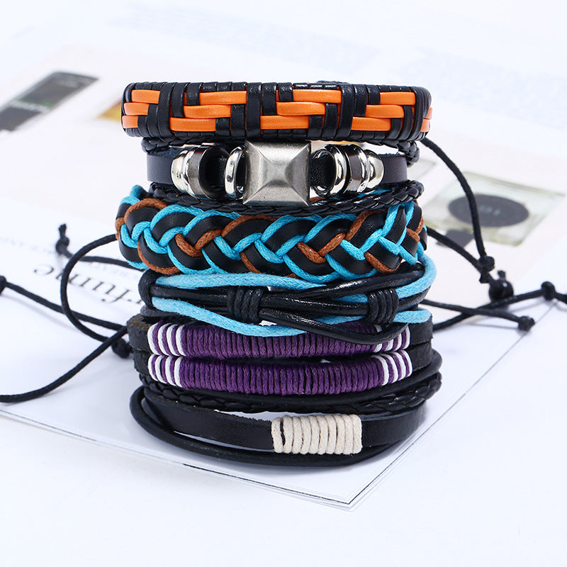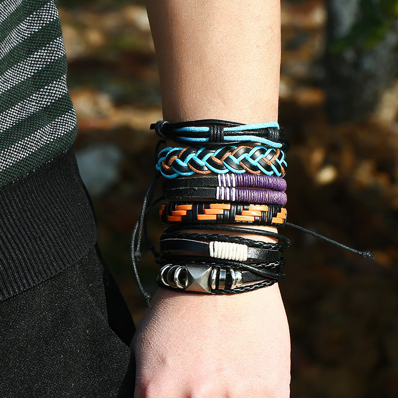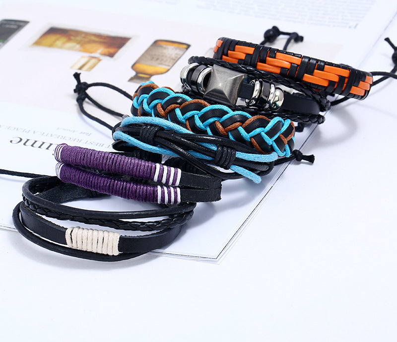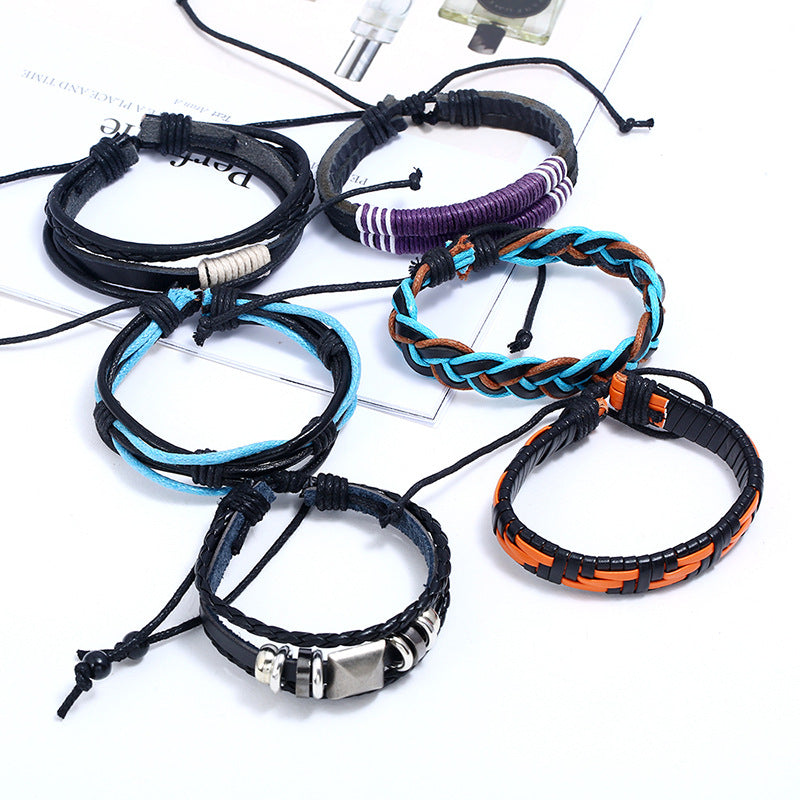 Punk Personality 6 Piece Cowhide Bracelet Set Retro Woven Multi-layer Bracelet