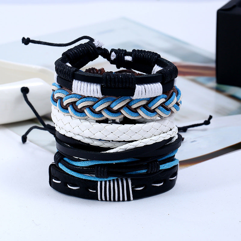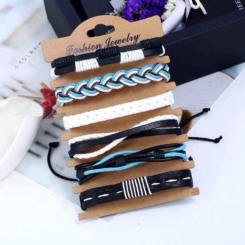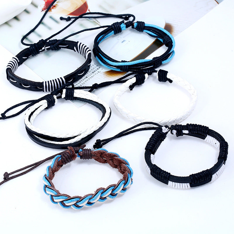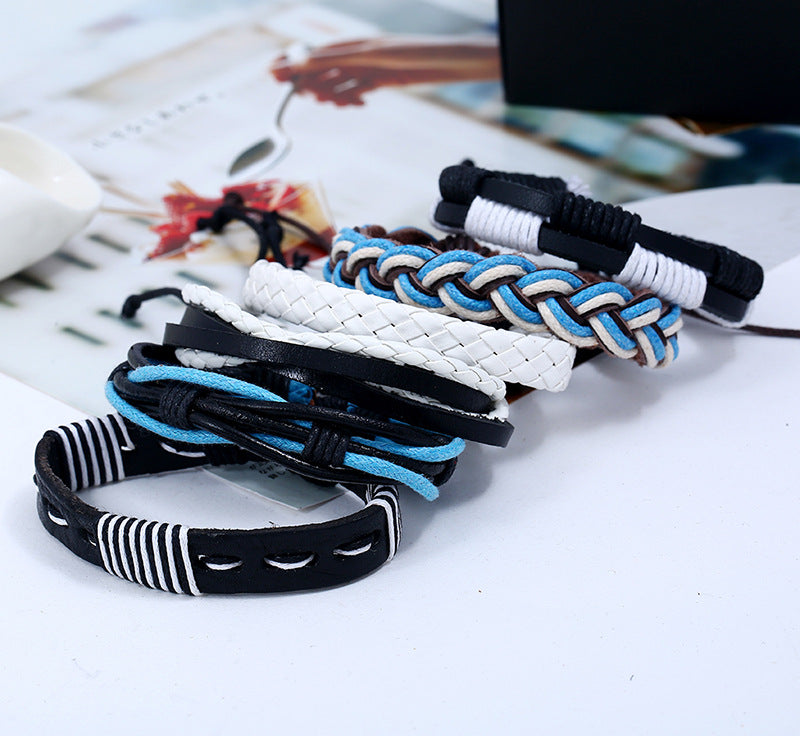 Simple Hand Woven Cowhide Bracelet Combination 6 Pieces Of Hand Rope Set