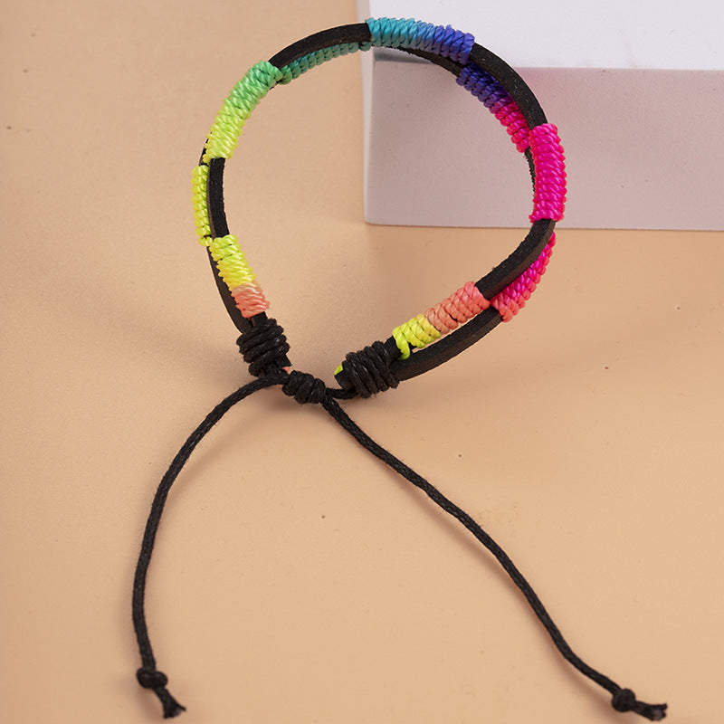 Simple Handwoven Rainbow Fashion Couple Handrope