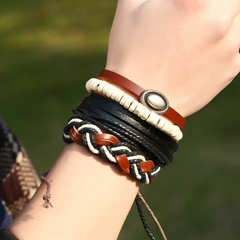 Simple Retro Set Bracelet Braided Punk Bracelet Twine Bracelet