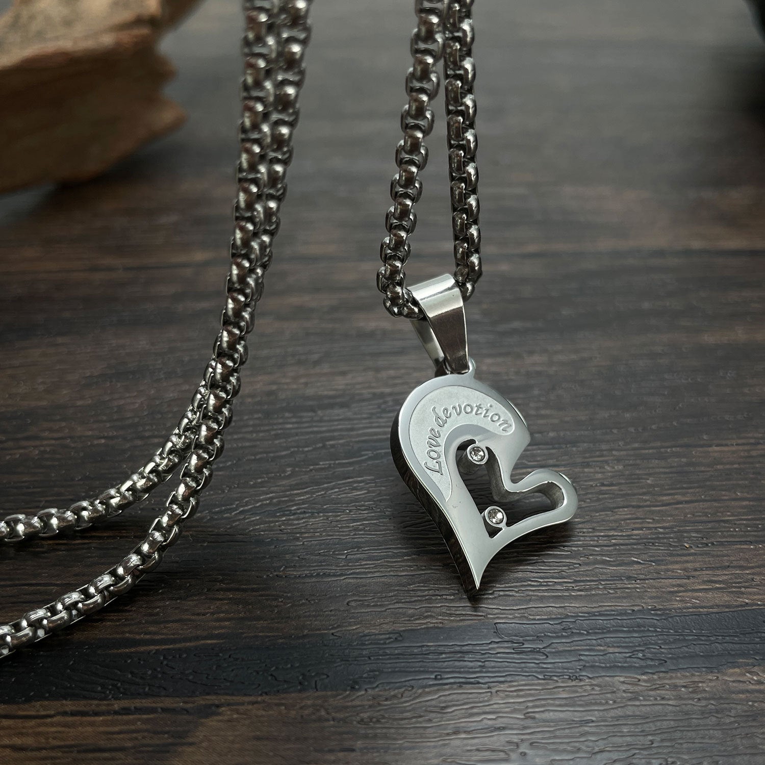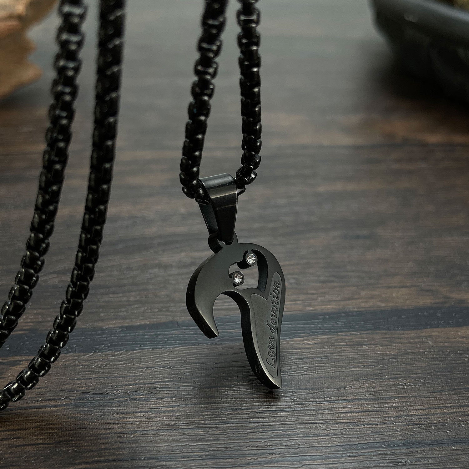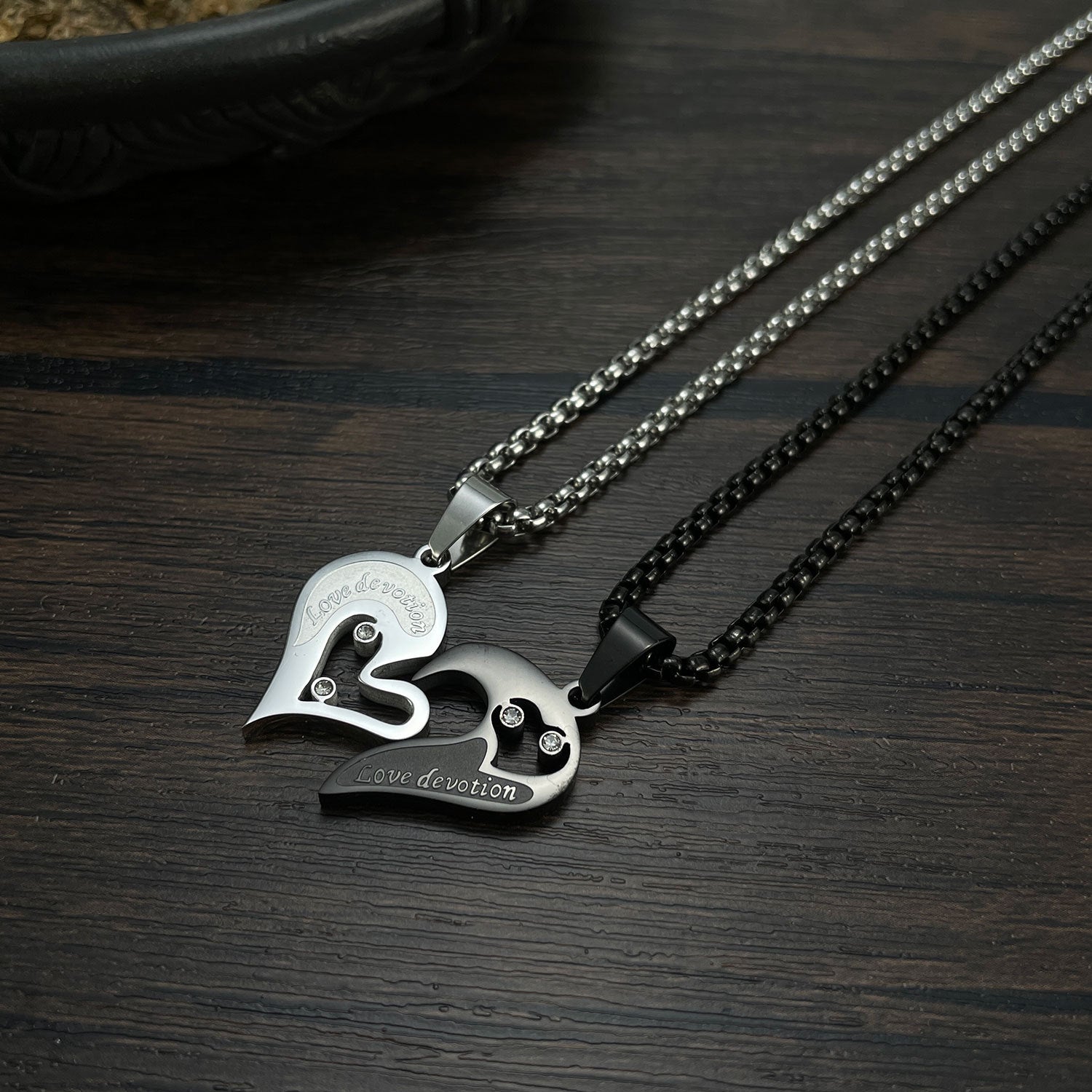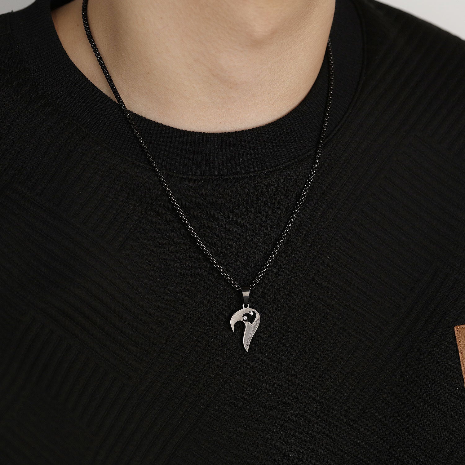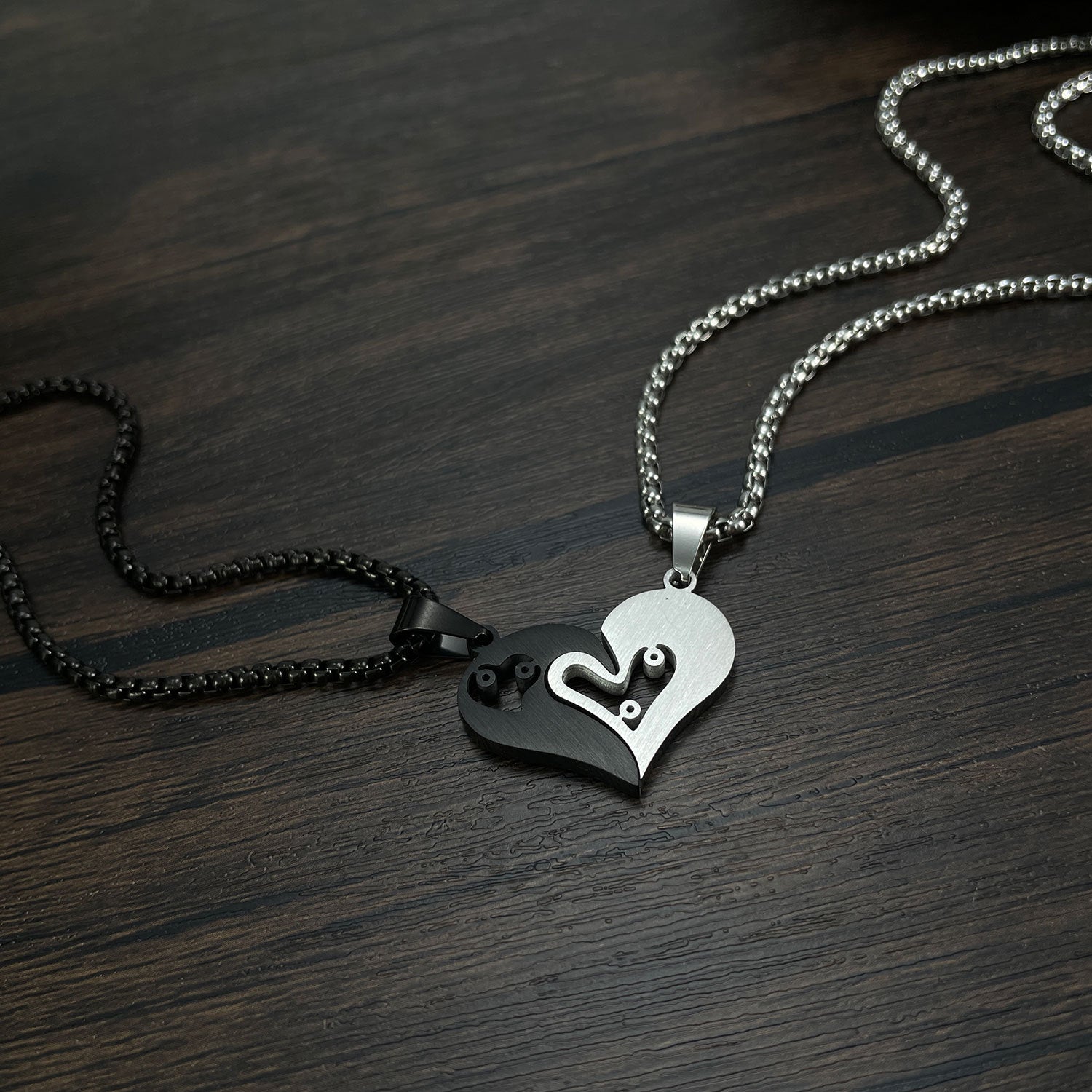 Titanium Steel Black And White With Love Couple Pendant Personality Vintage Stainless Steel Necklace
