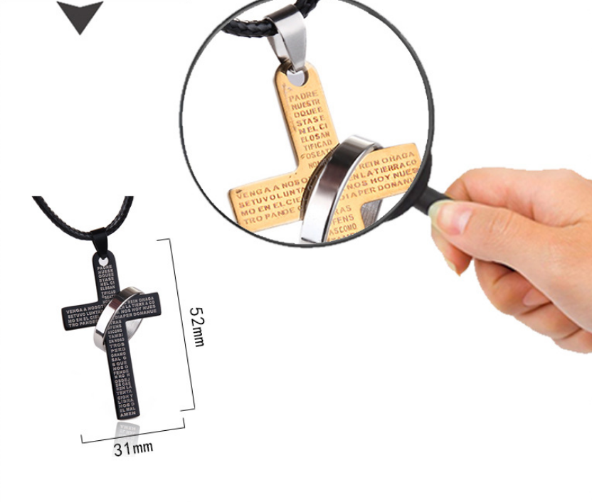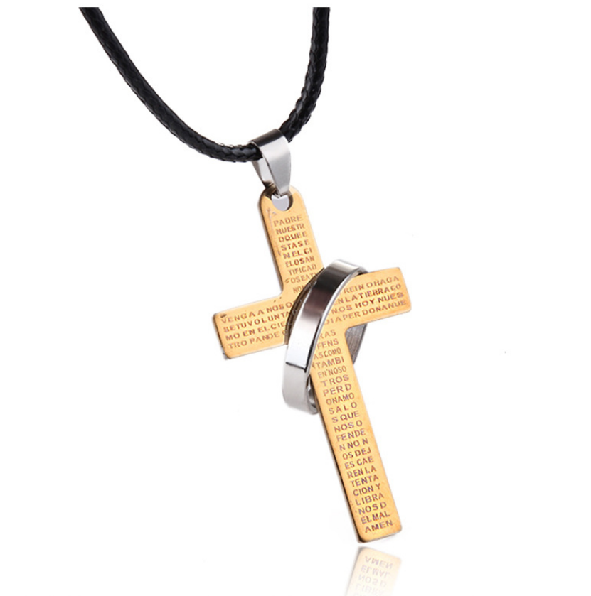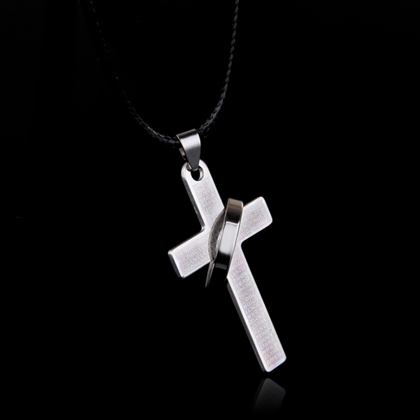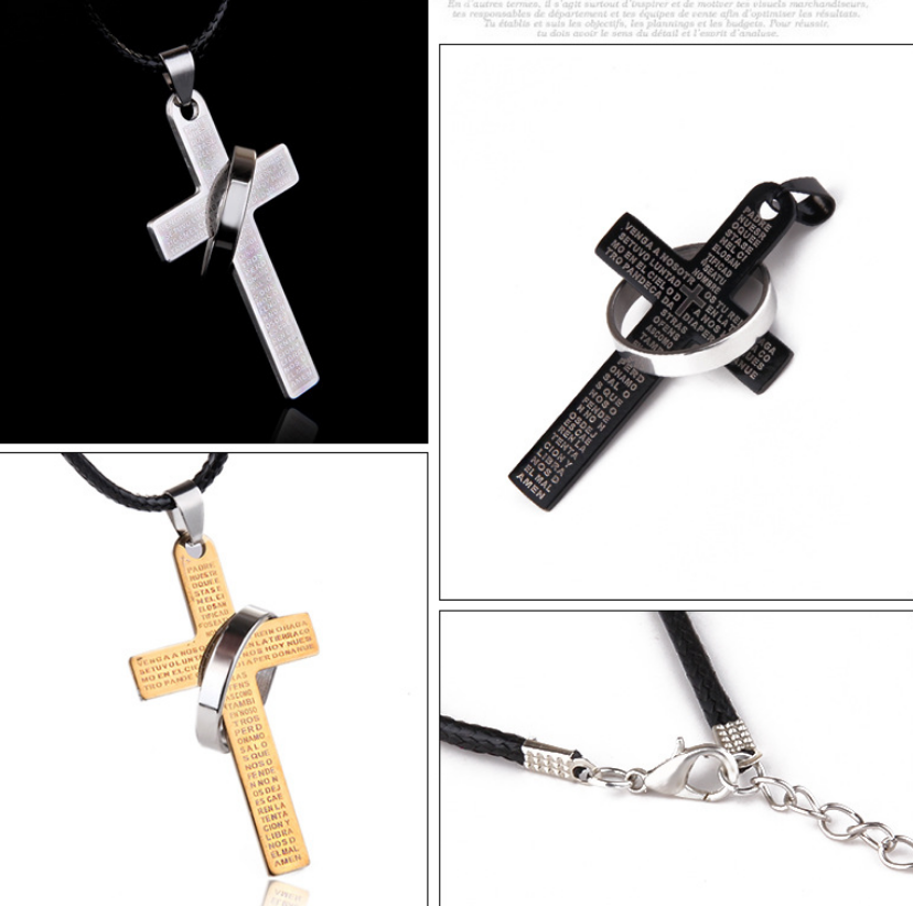 Titanium Steel Cross Letter With Ring Pendant Neckalce