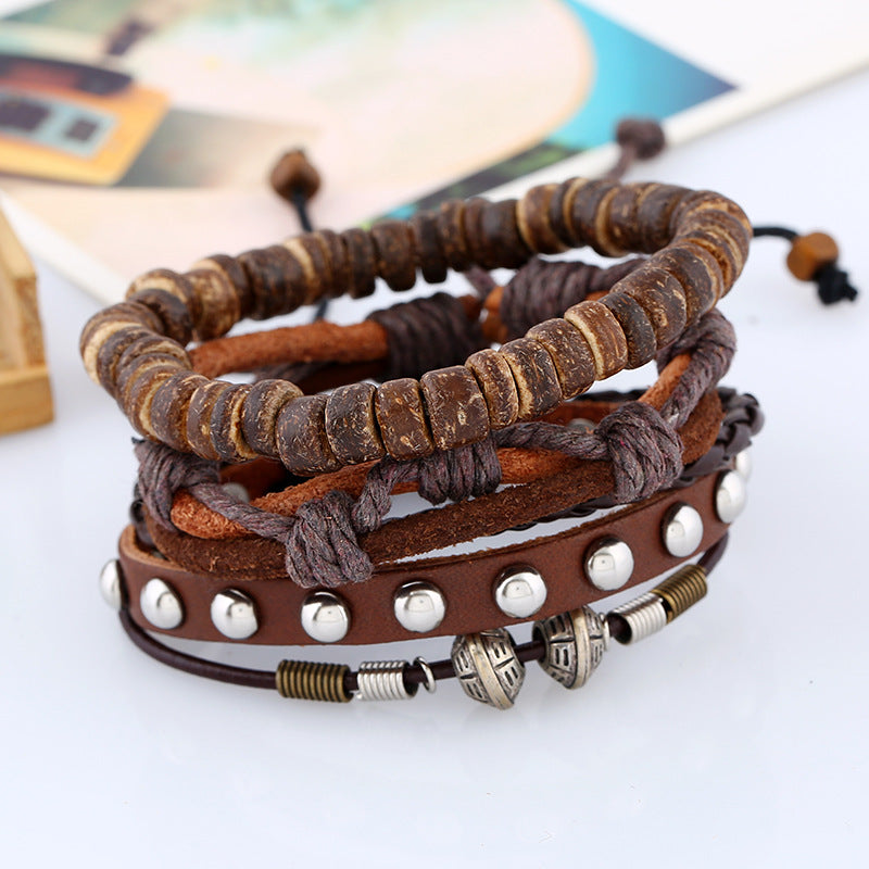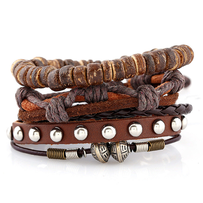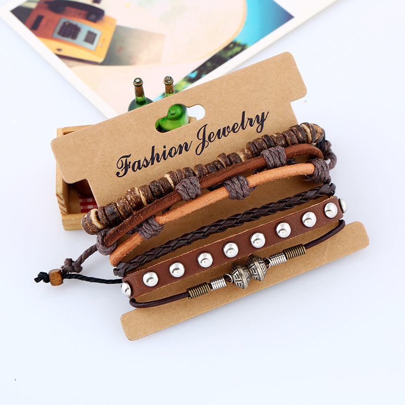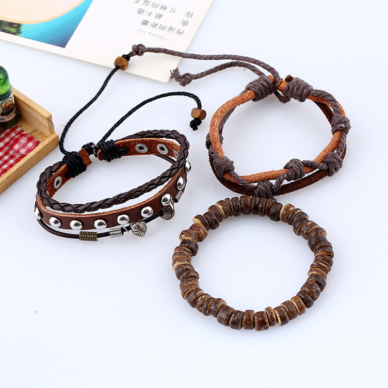 Vintage Braided Set Cowhide Bracelet Beaded Bracelet