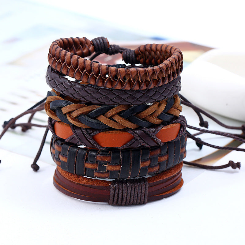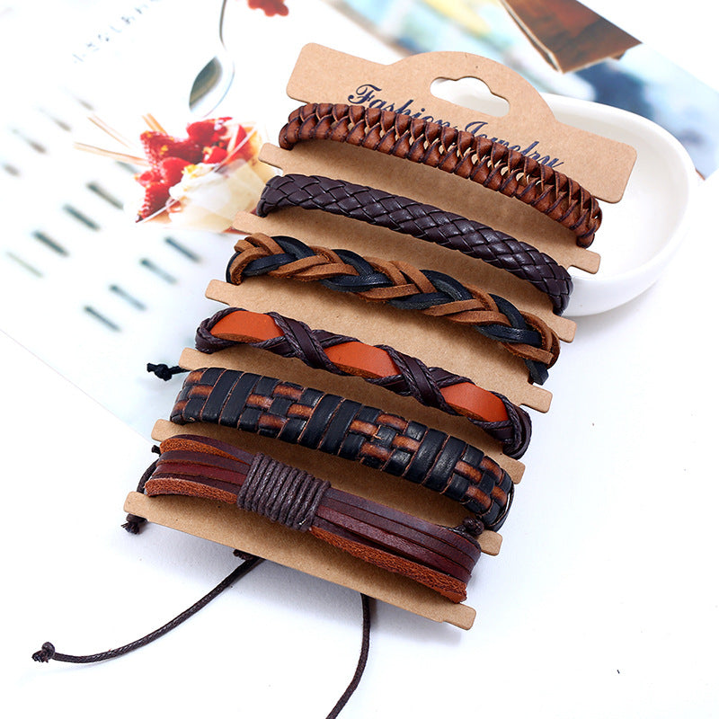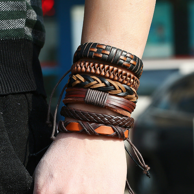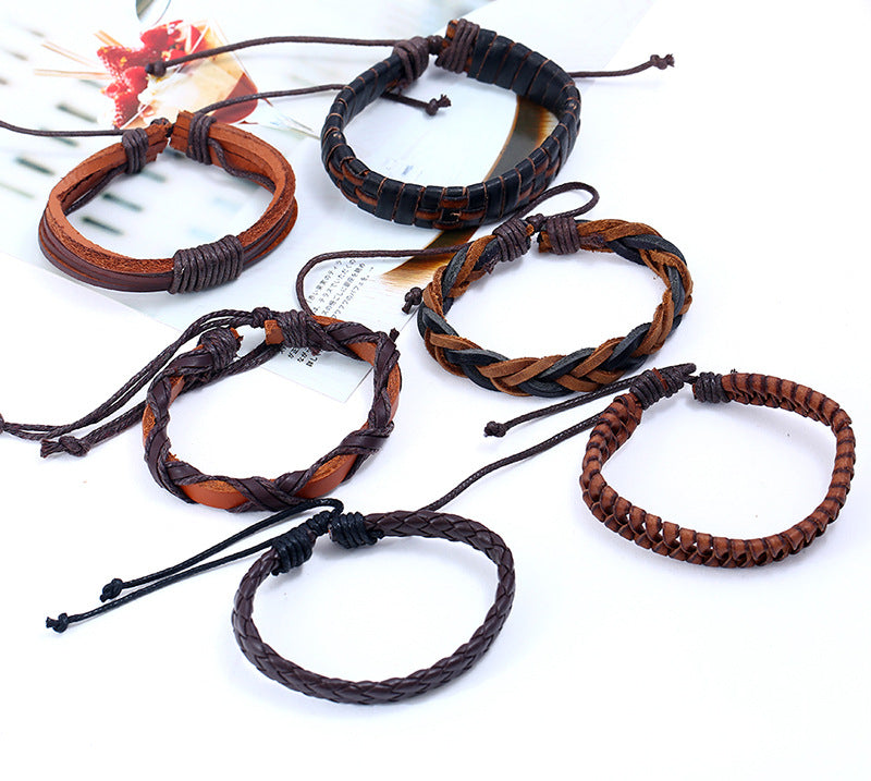 Vintage Woven Cowhide Bracelet Set Of Six Multi-layer Leather Bracelets