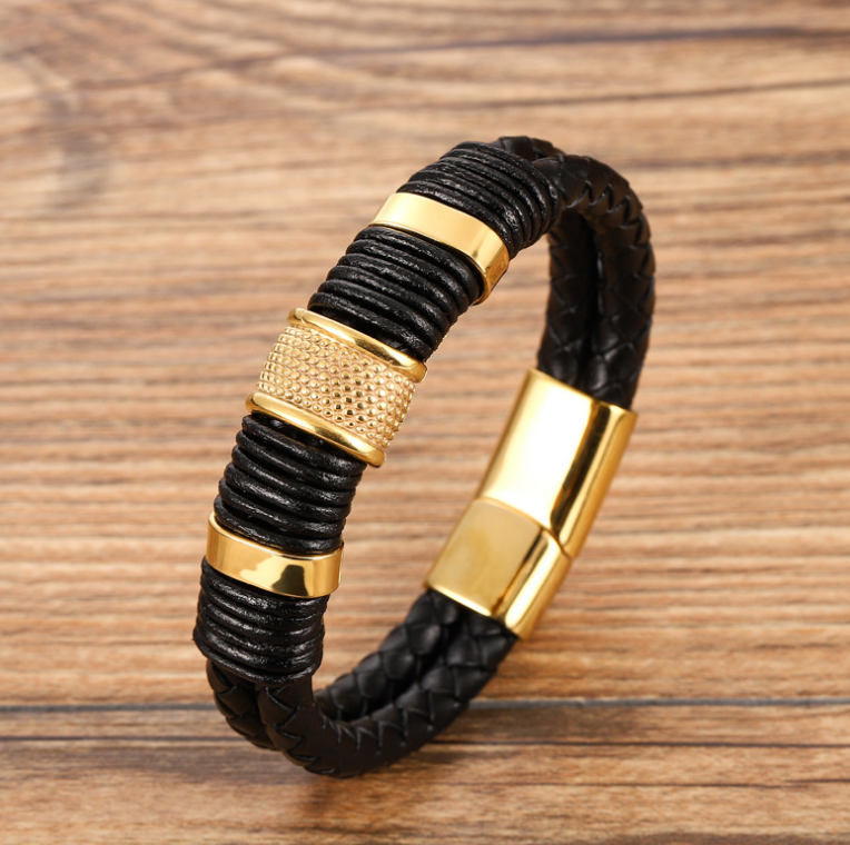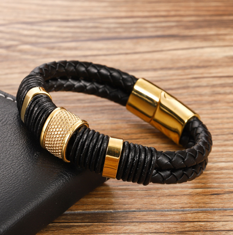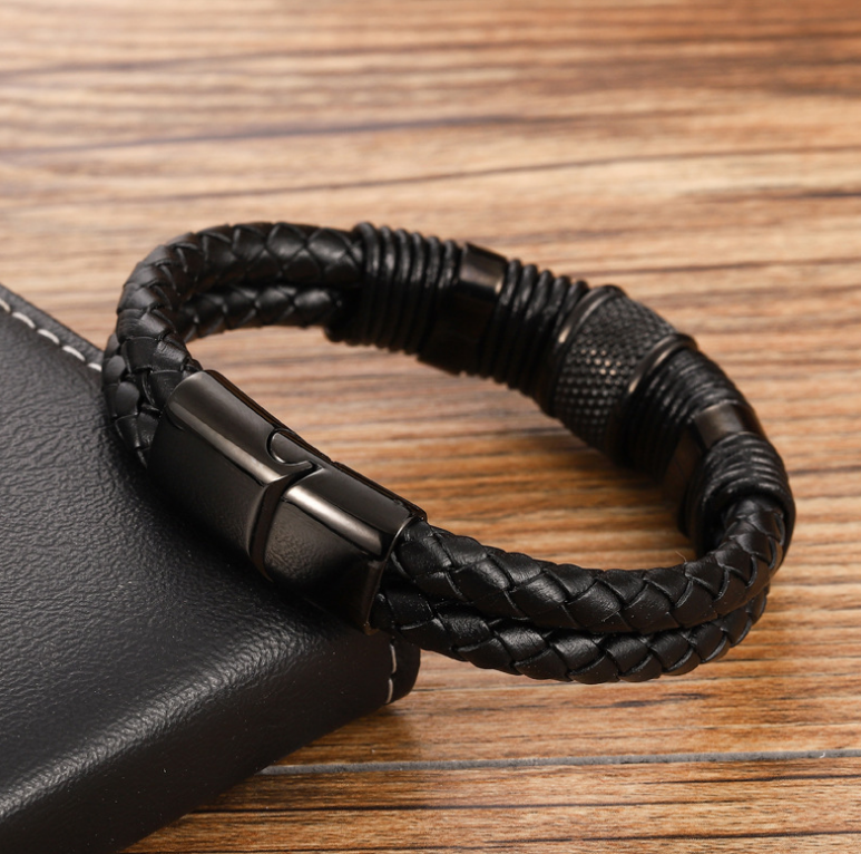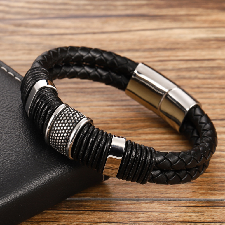 Ethnic Style Retro Stainless Steel Magnetic Buckle Leather Bracelet