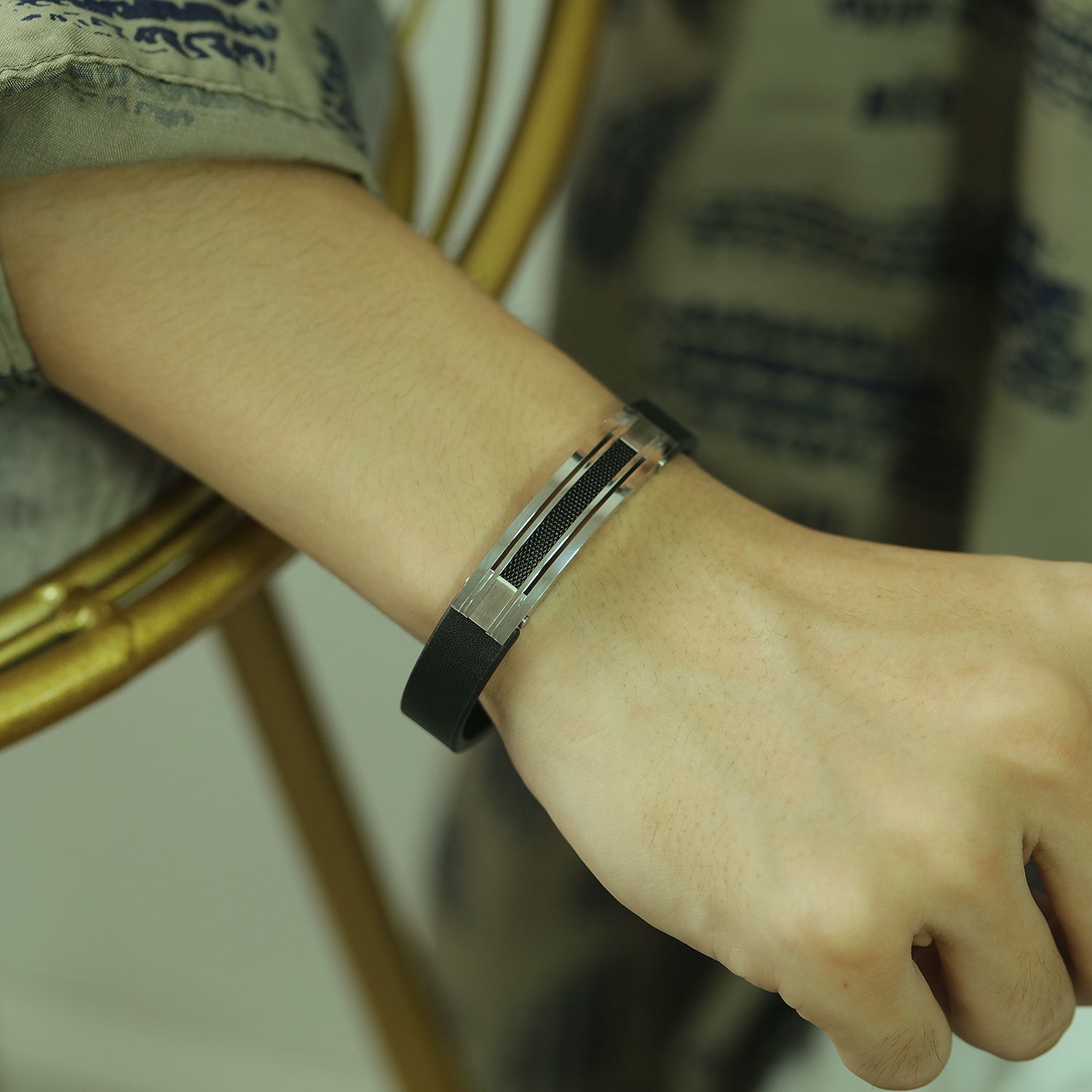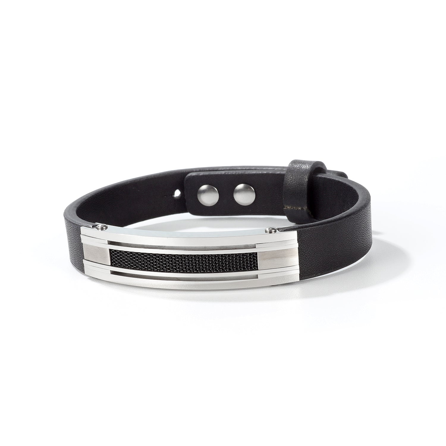 Fashionable Simple Personality Hip Hop Street Stainless Steel Men's Leather Bracelet