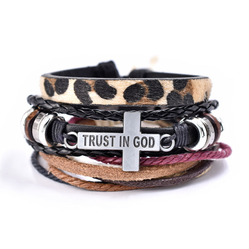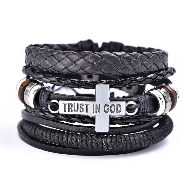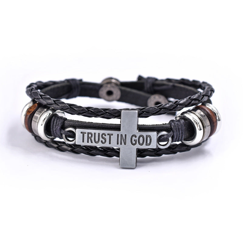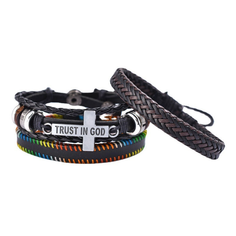 Trust In God Cross Bracelets 3pcs/set Wristband Fashion Rope Wrap Cuff Bangle Leather Bracelets