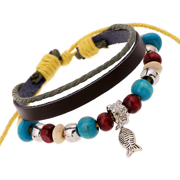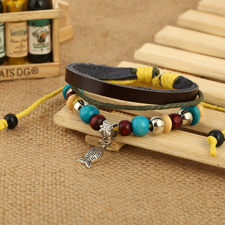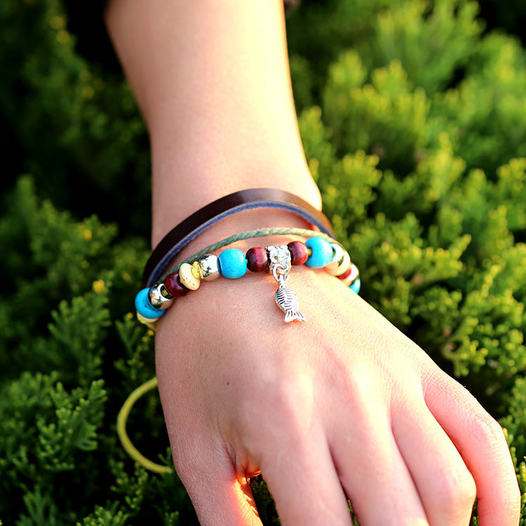 Antique Bracelet Fish Pendant Cowhide Bracelet