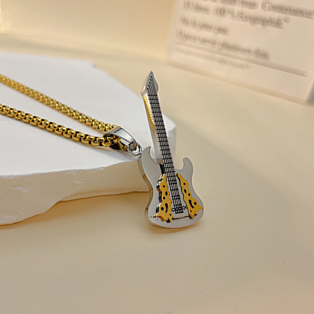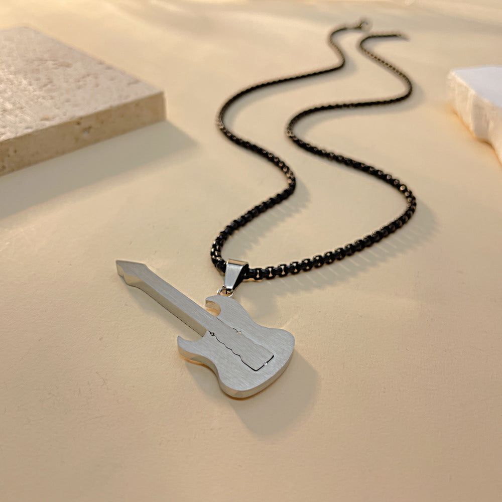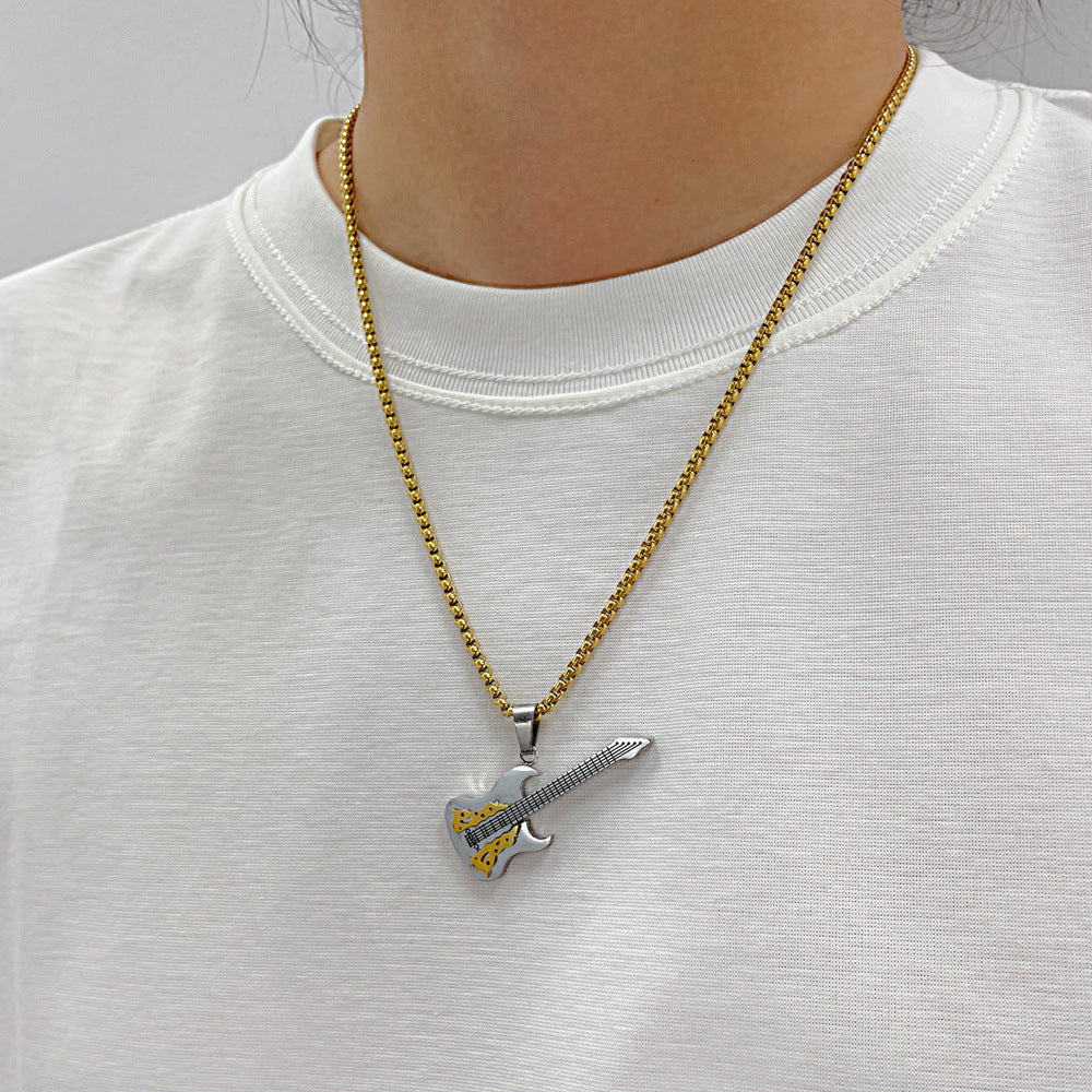 Personality Street Rock Music Stainless Steel Guitar Hip Hop Style Titanium Steel Necklace