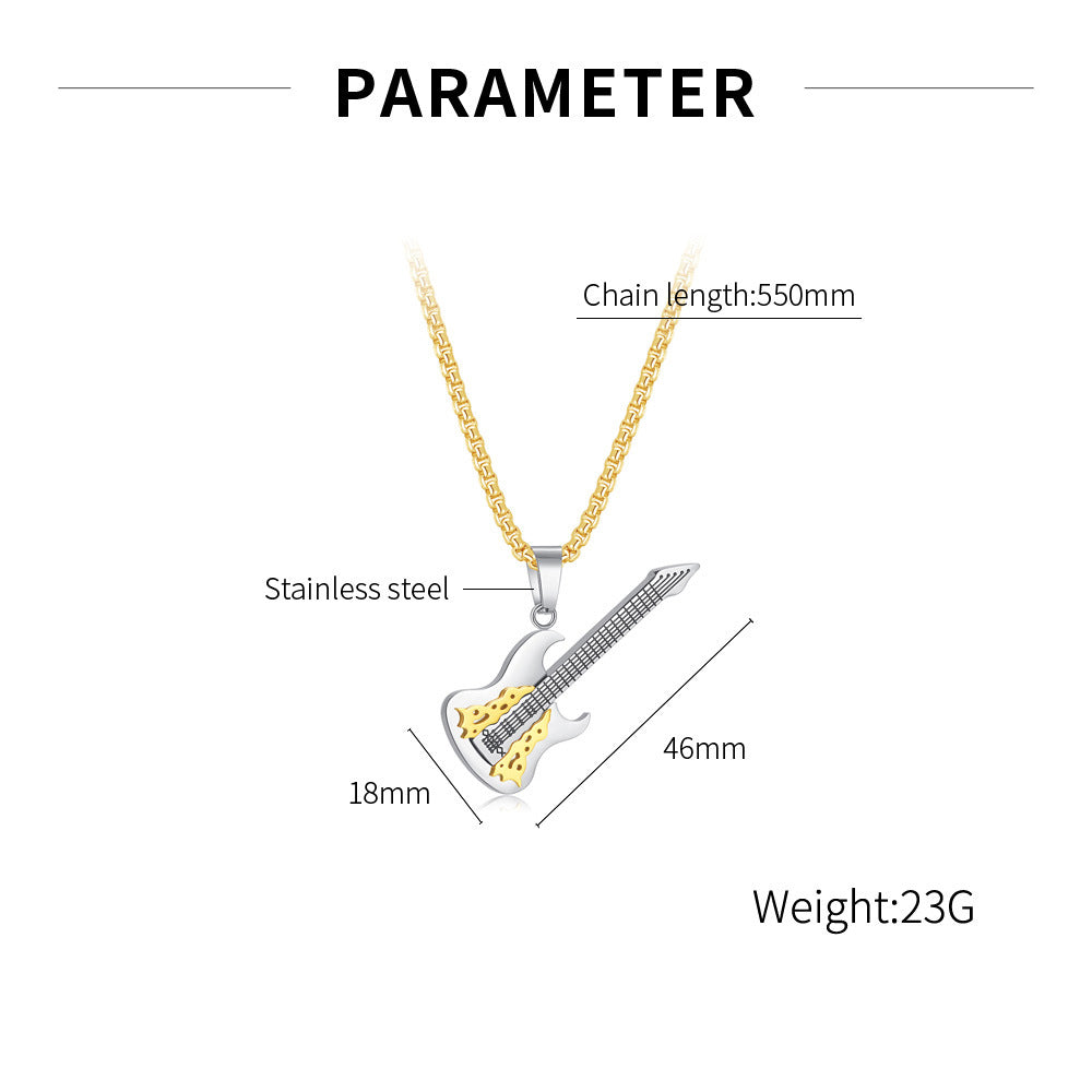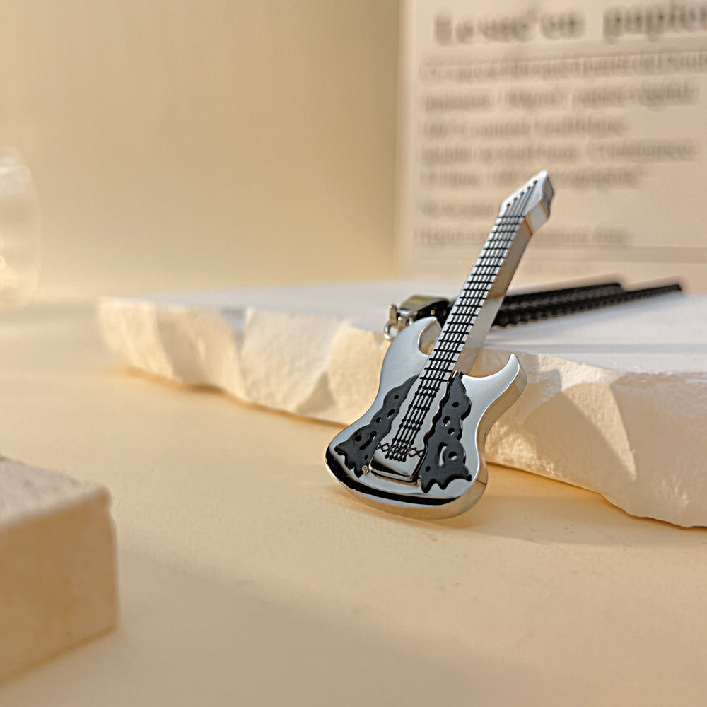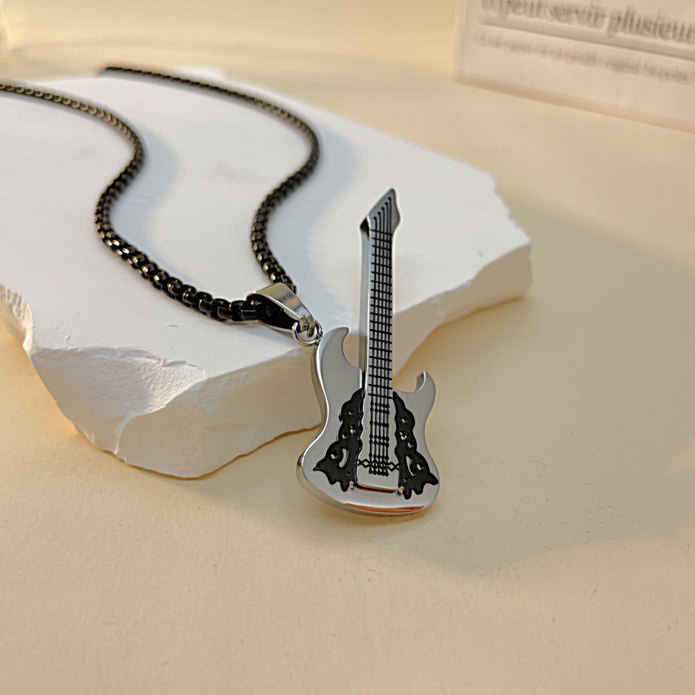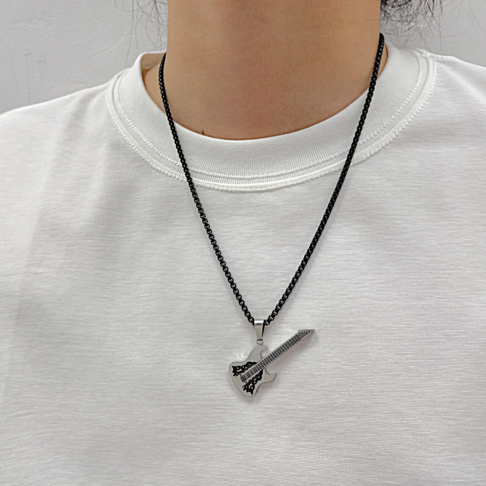 Personality Street Rock Music Stainless Steel Guitar Hip Hop Style Titanium Steel Necklace