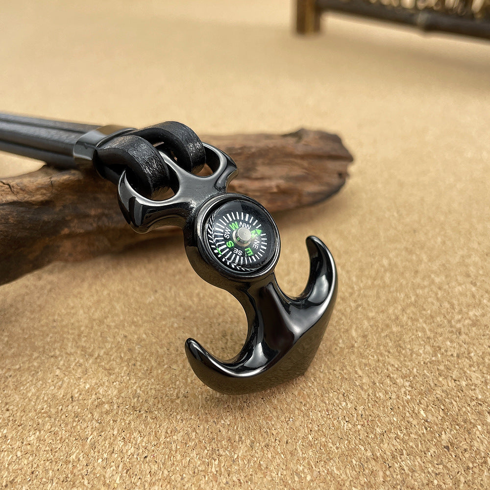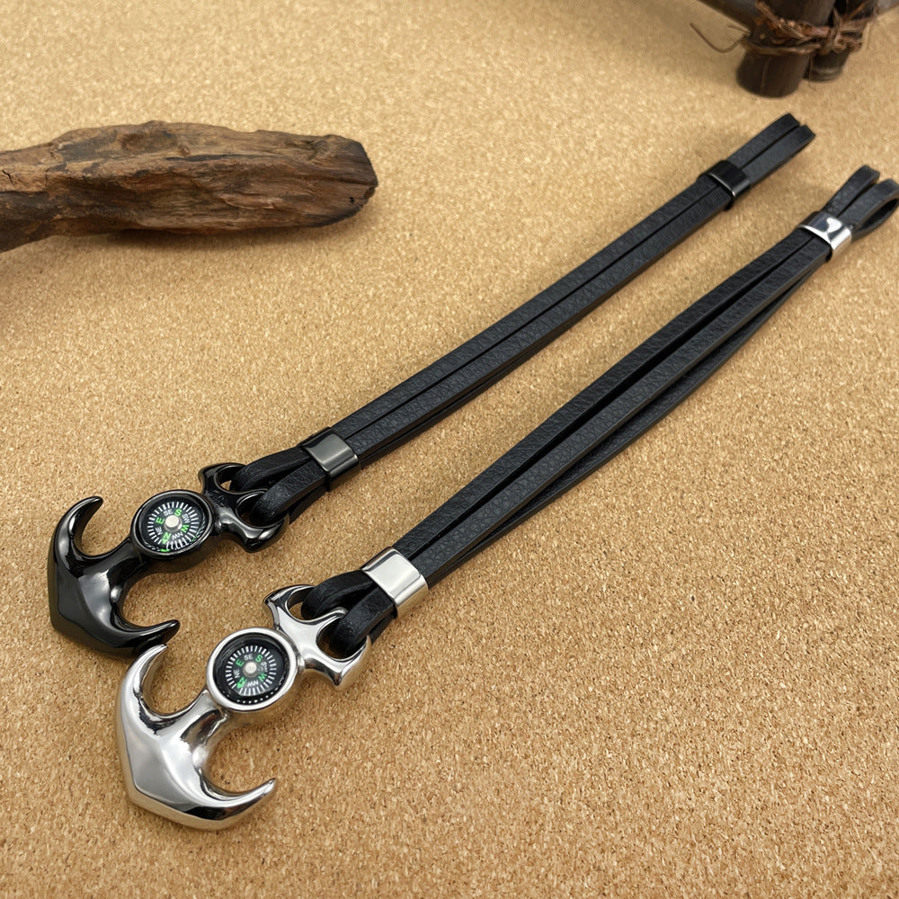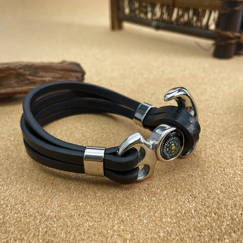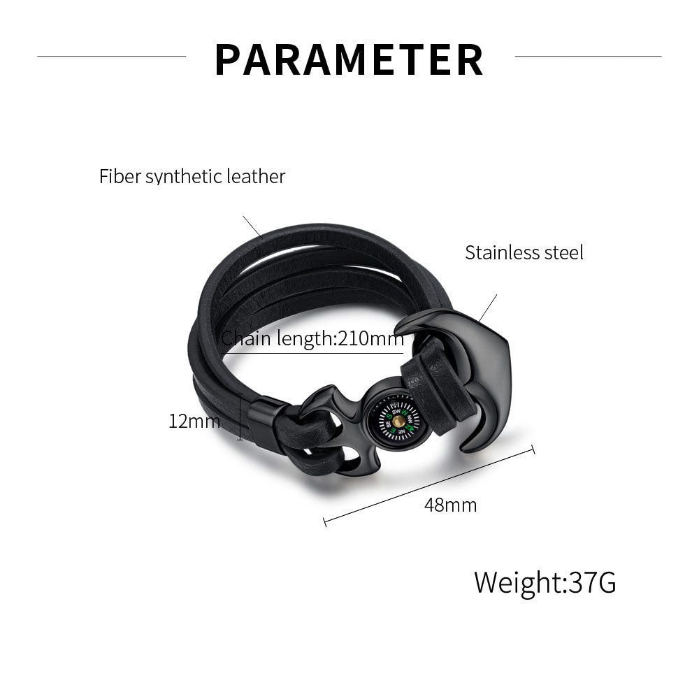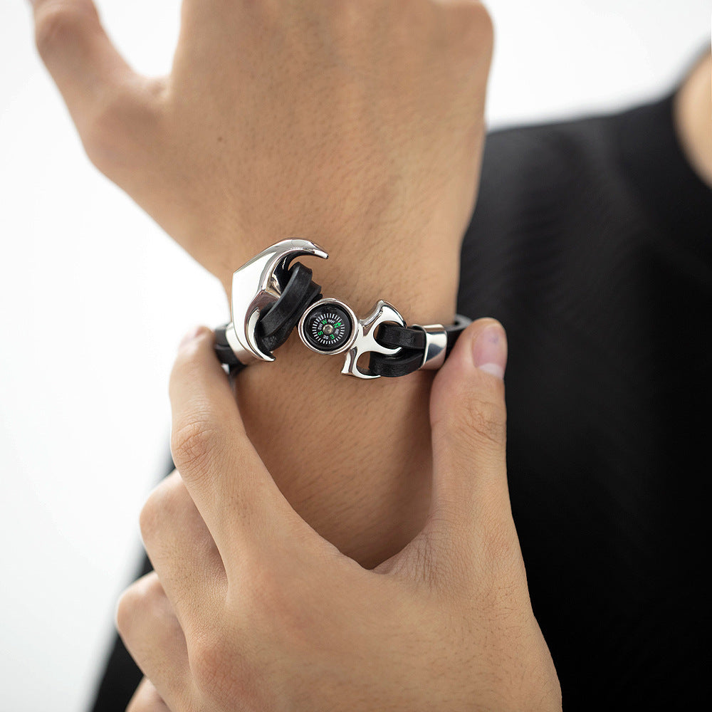 Titanium Steel Anchor Braided Leather Rope Outdoor Personality Stainless Steel Compass Bracelet