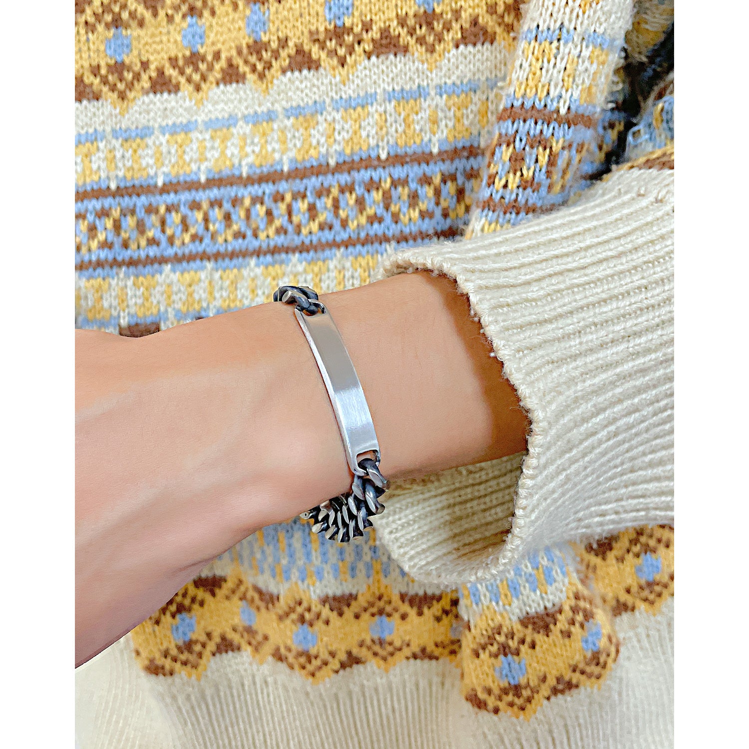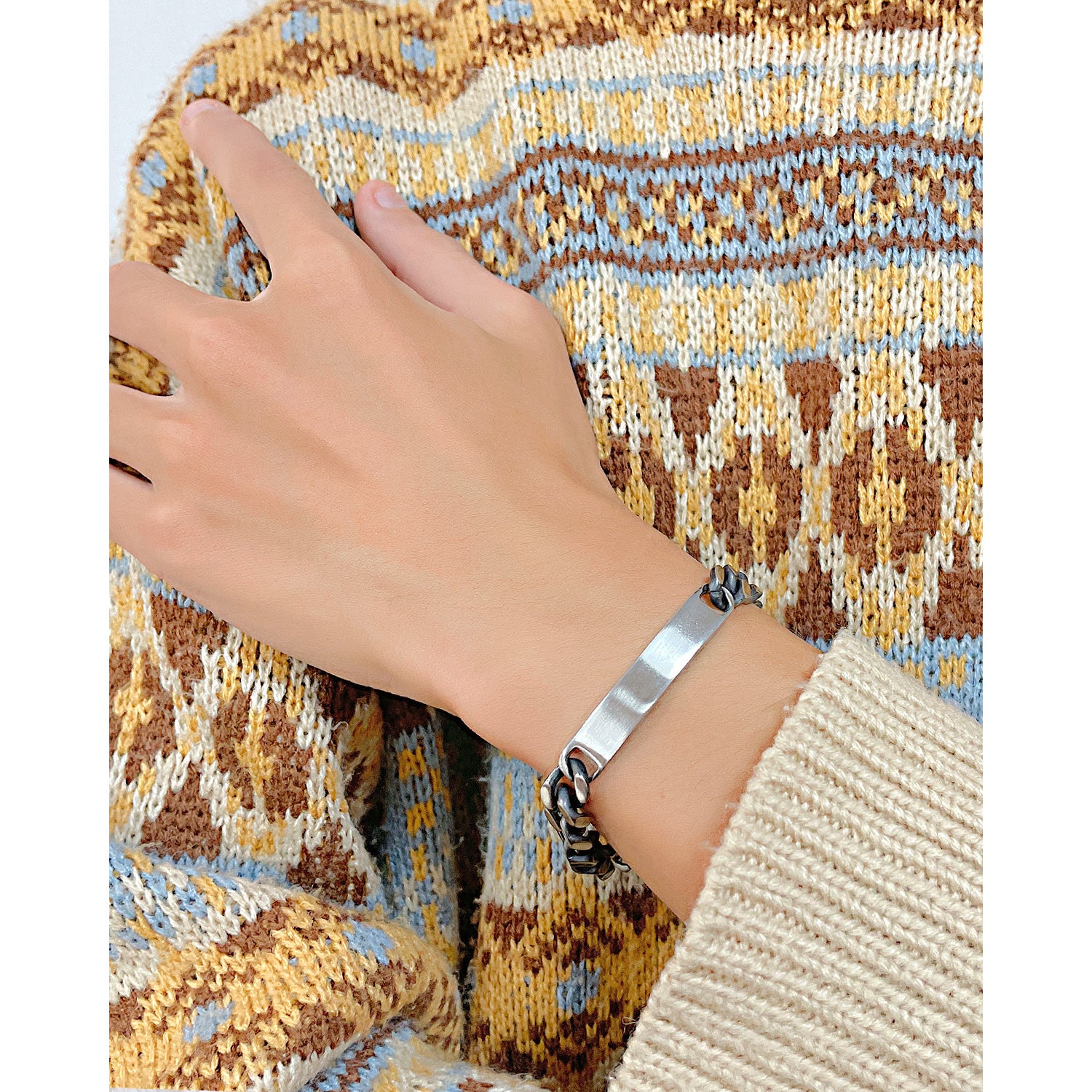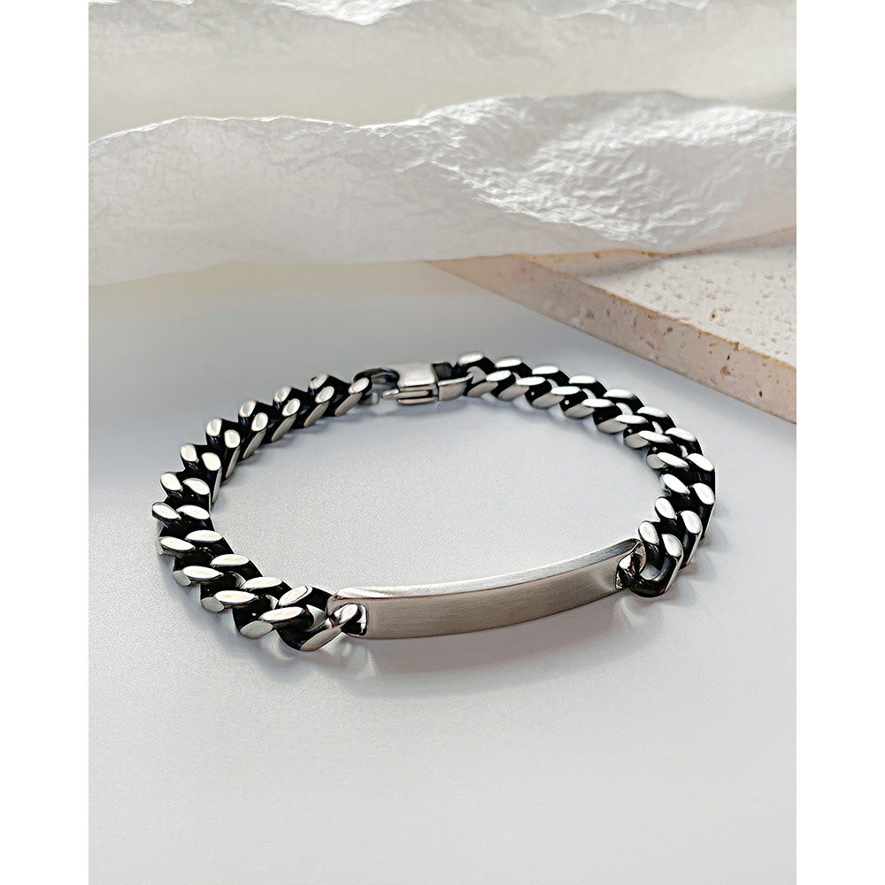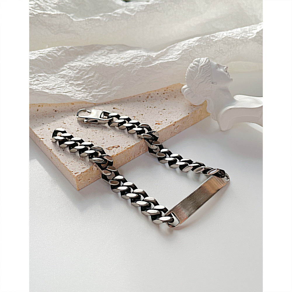 Vintage Curved Brand Smooth Stainless Steel Cuban Chain Bracelet